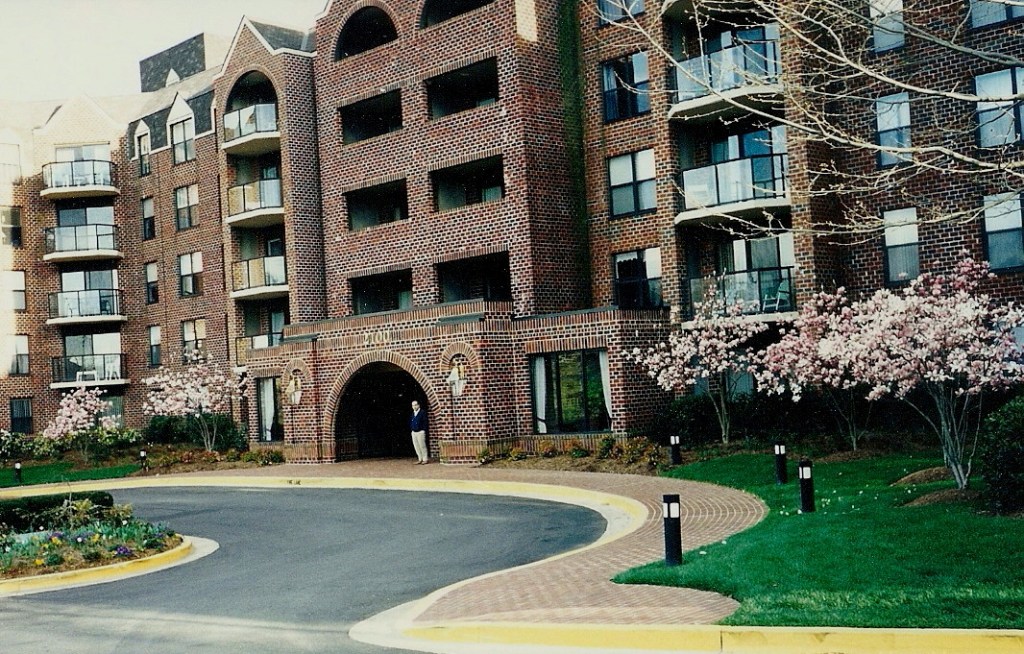 [The building front on Lee Highway. When I first moved in, a couple of spots from my underground parking spot was a gold Rolls Royce. I thought I’d gotten in over my head . . . ]