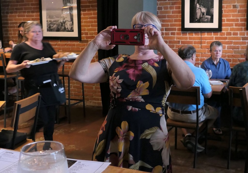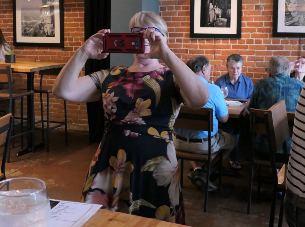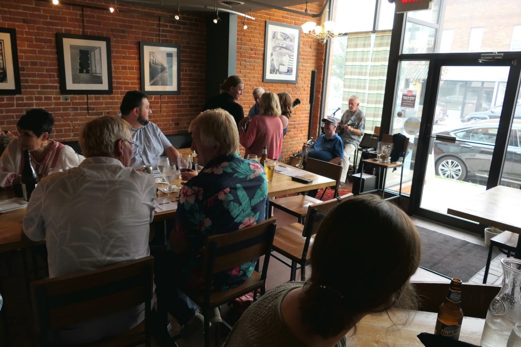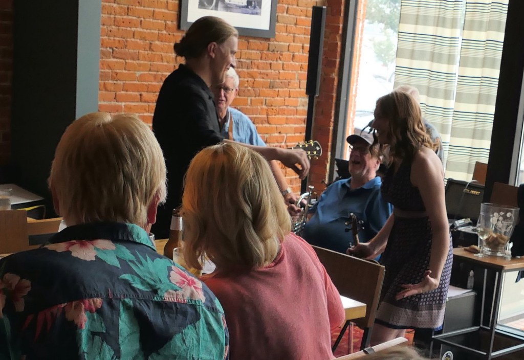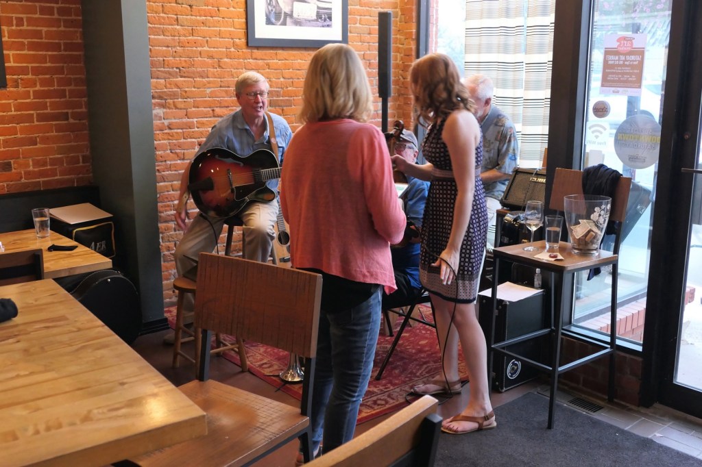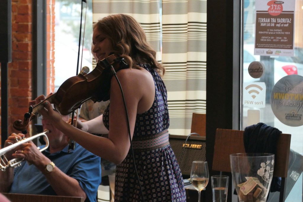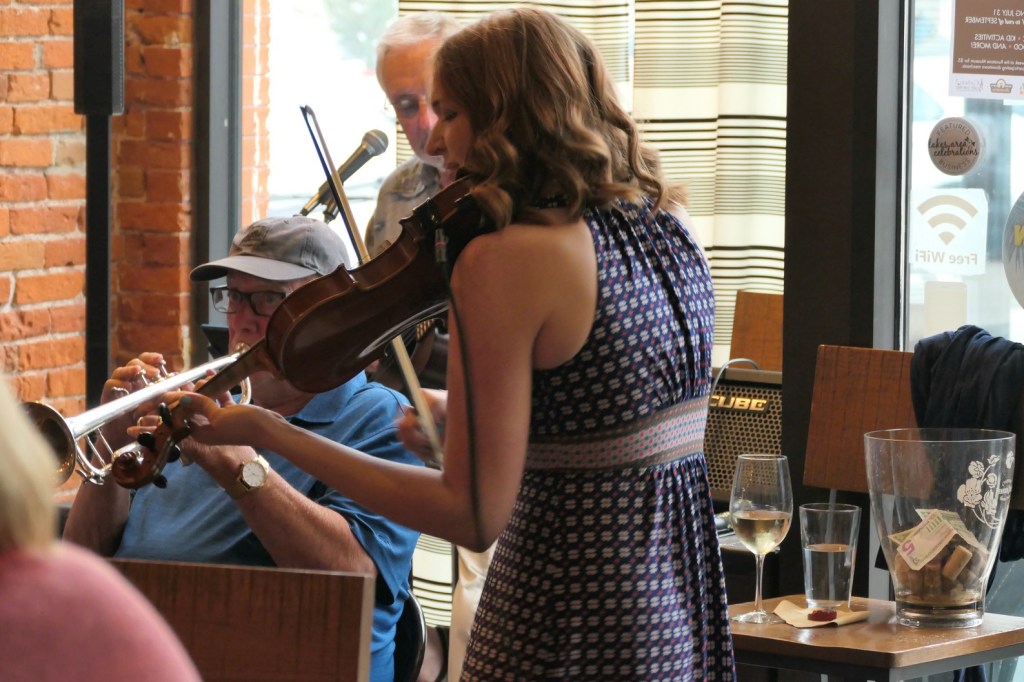 [Our server, Vicky, from the original SAWA times remarked it was just like the good ole days – fun with all the original fans. Sami Steidl was back to play with the boys from Tuesday Night Club. She was our first discovered wunderkind after we retired here . . . ]
