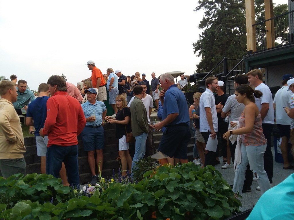 [Looking down the 10th fairway at a group of 8 who had to play through to determine the final 6 players to make the Men’s Championship Flight . . . ]