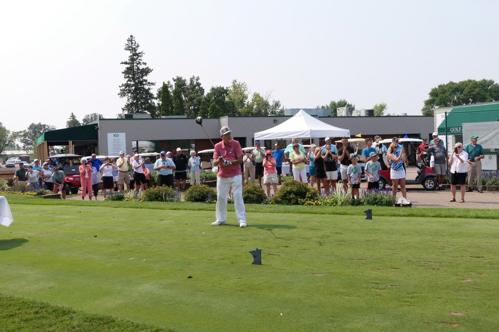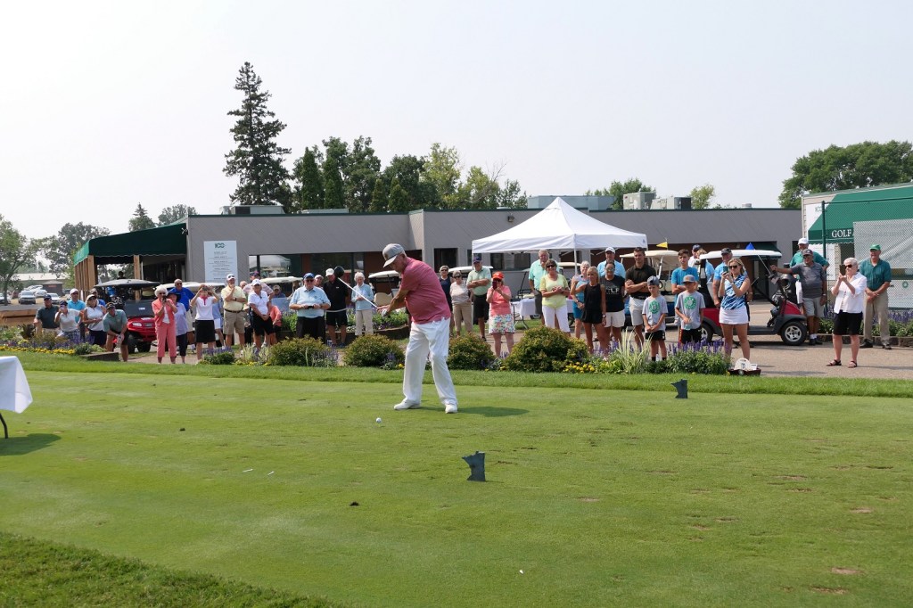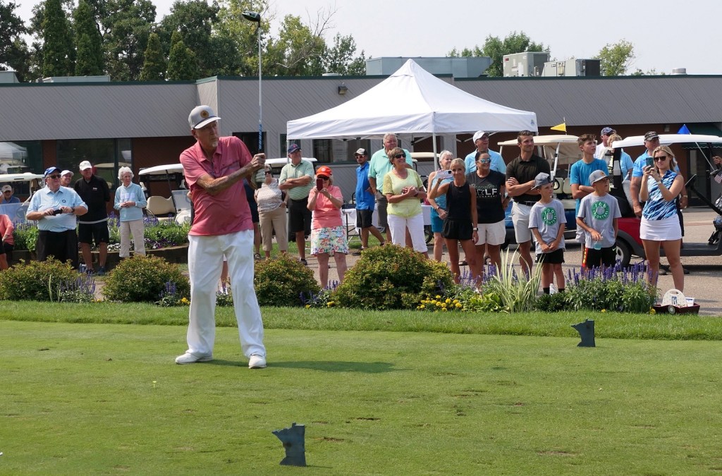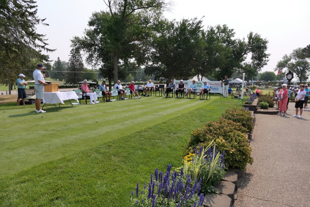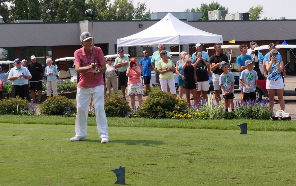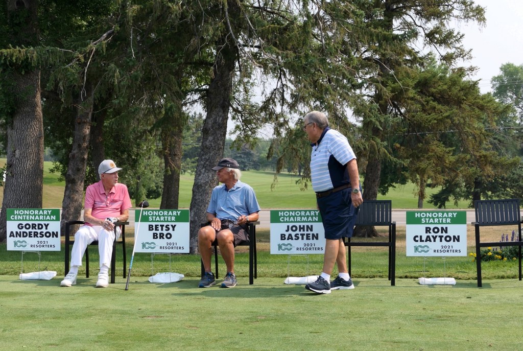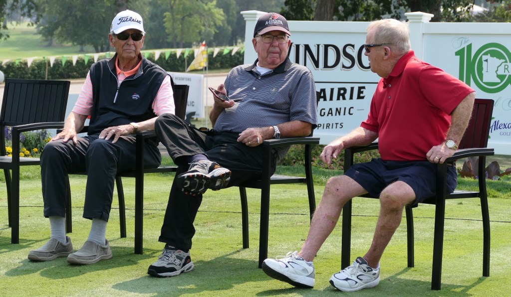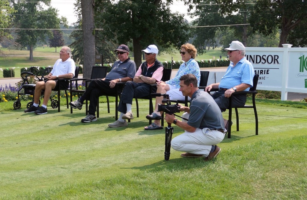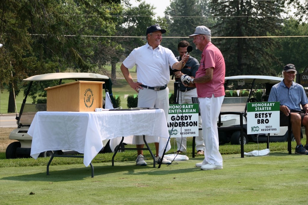 [As noted in the opening photo of this post, the Super likes to hang out with local celebrities. Gordy Anderson is 100 years old and was the honorary centenarian for this, the 100th Annual Resorters Golf Tournament. Here he’s being interviewed by Joe Korkowski of the Voice of Alexandria (the interview can be found on YouTube, if one is so inclined) . . . ]