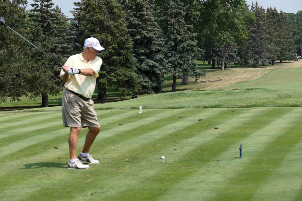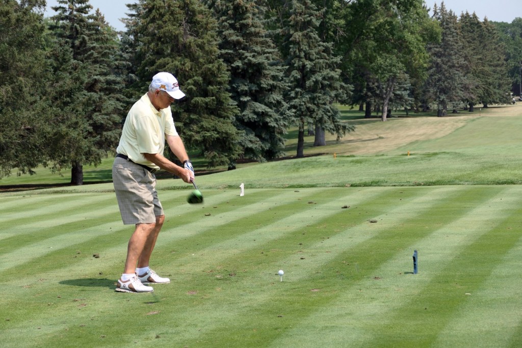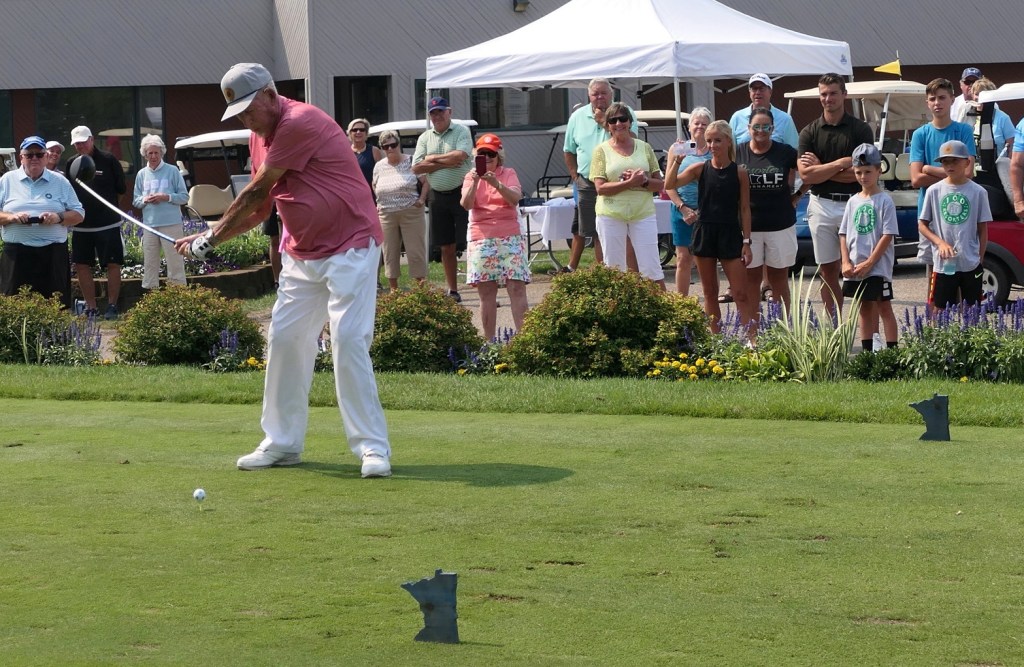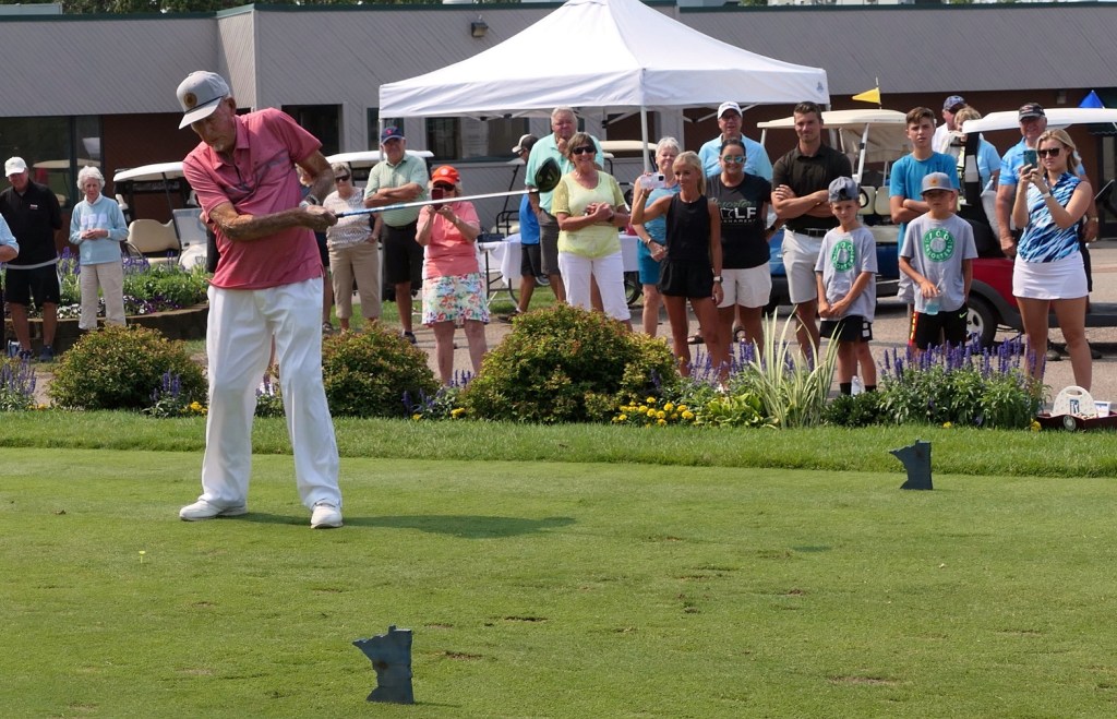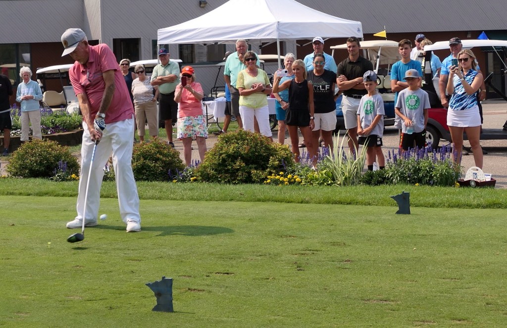 [Gordy still plays 3 – 4 times a week, so naturally he hit a solid opening shot of the match play tournament . . . ]