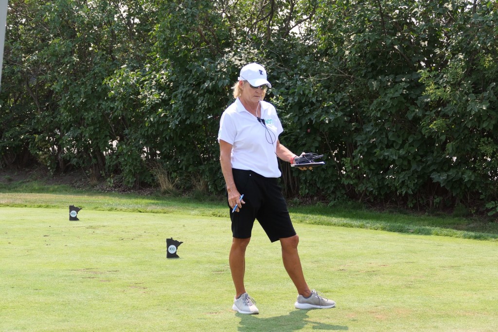 [Lisa Grimes, the club’s teaching pro, was somehow able to work the Resorters though on the first weekend she was playing in the U.S. Senior Women’s Championship on the far side of the country and on the second weekend in the LPGA Senior Women’s Tournament in the Twin Cities . . . ]