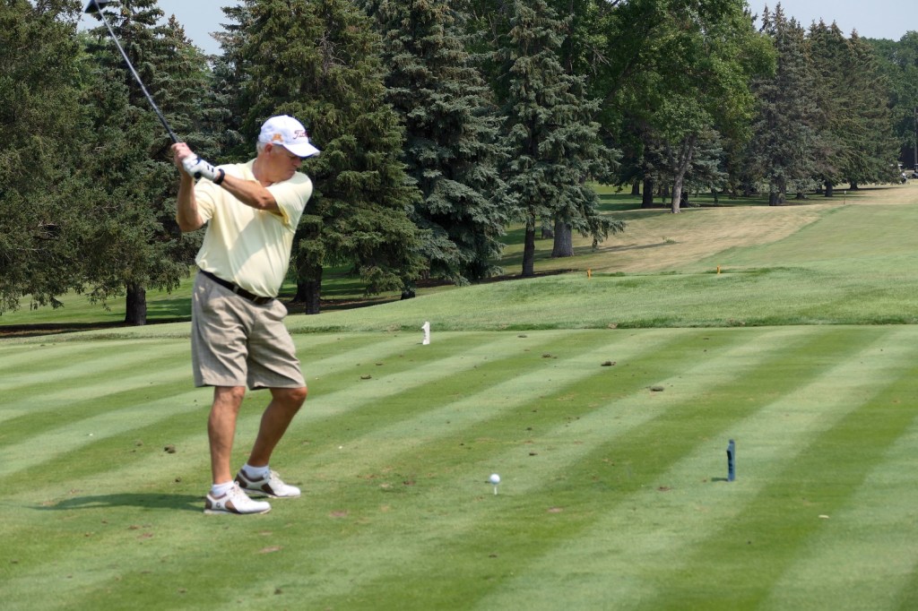 [Our music event partner Dave about to tee off on the 10th tee in a Master’s First Flight match . . . ]