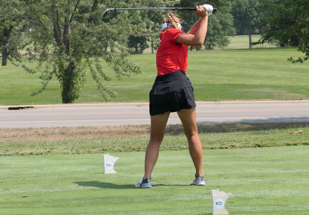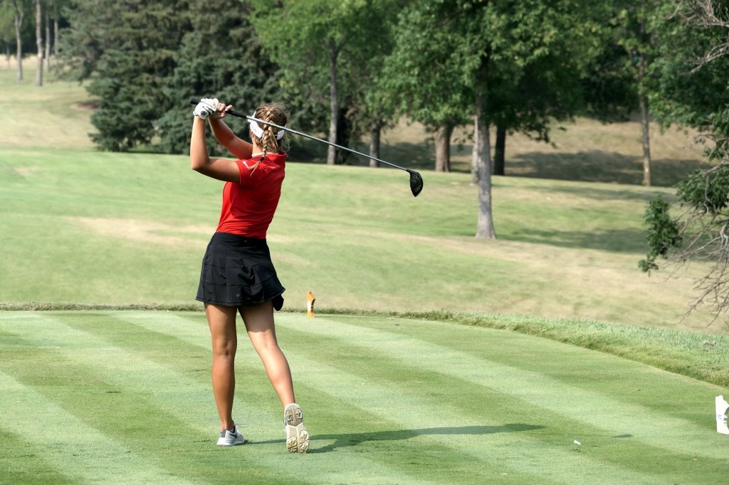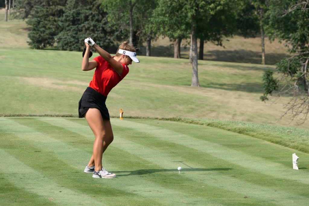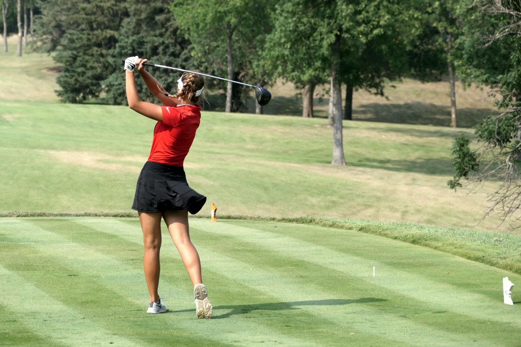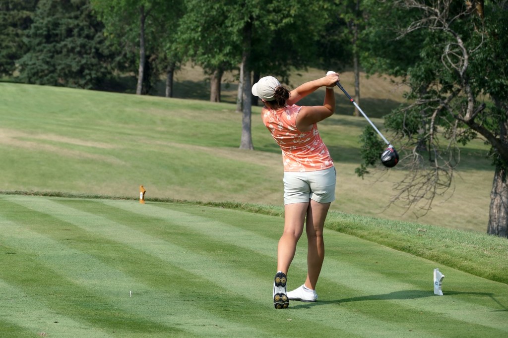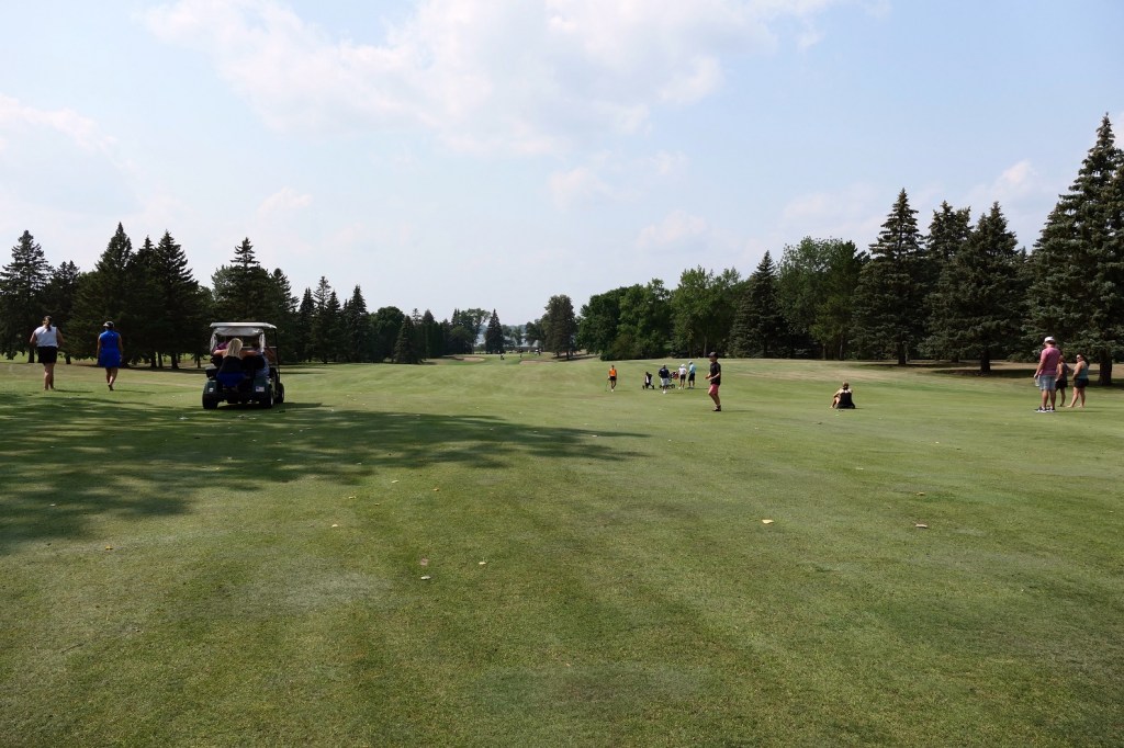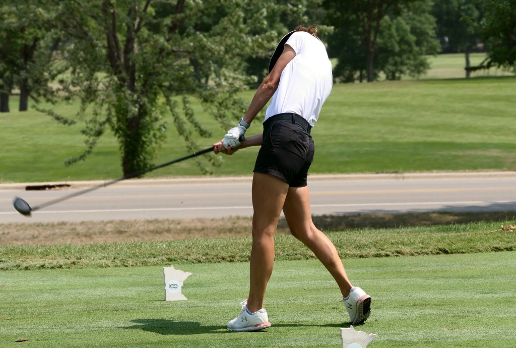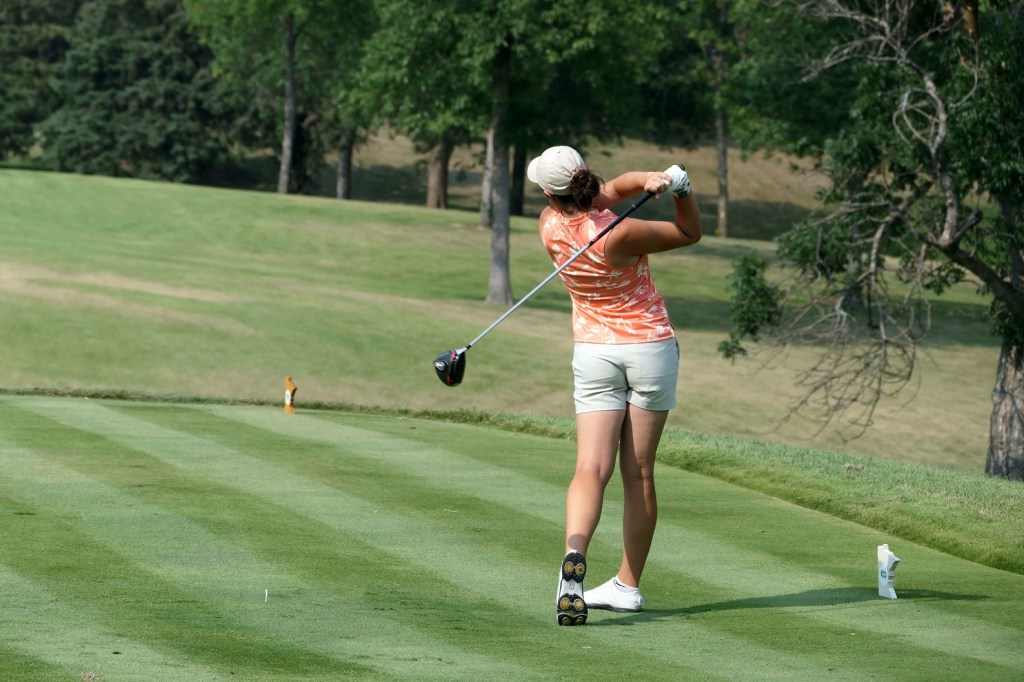 This was Day 5 of the 100th Annual Resorters Golf Tournament. It was serious golf tiime – in the championship quarter finals. As you’ll recall from your readings, the Alexandria High School girls golf team won the state tournament earlier this year by an astounding 22 shots by shooting a team tying record 303 in the 2nd round (top 4 scores on the team, which were 75, 75, 76, and 77). The whole team is made up of underclassmen, as in they’ll all be back again next year. Well, I had never seen any of them play before, so today was going to be the day. Hannah Boraas (a junior-to-be) and Cora Larson (a senior-to-be) were the team leaders all year. They would be in separate contiguous foursomes, so I could follow both, that also contained two previous Resortes winners. Pencils ready, begin . . .