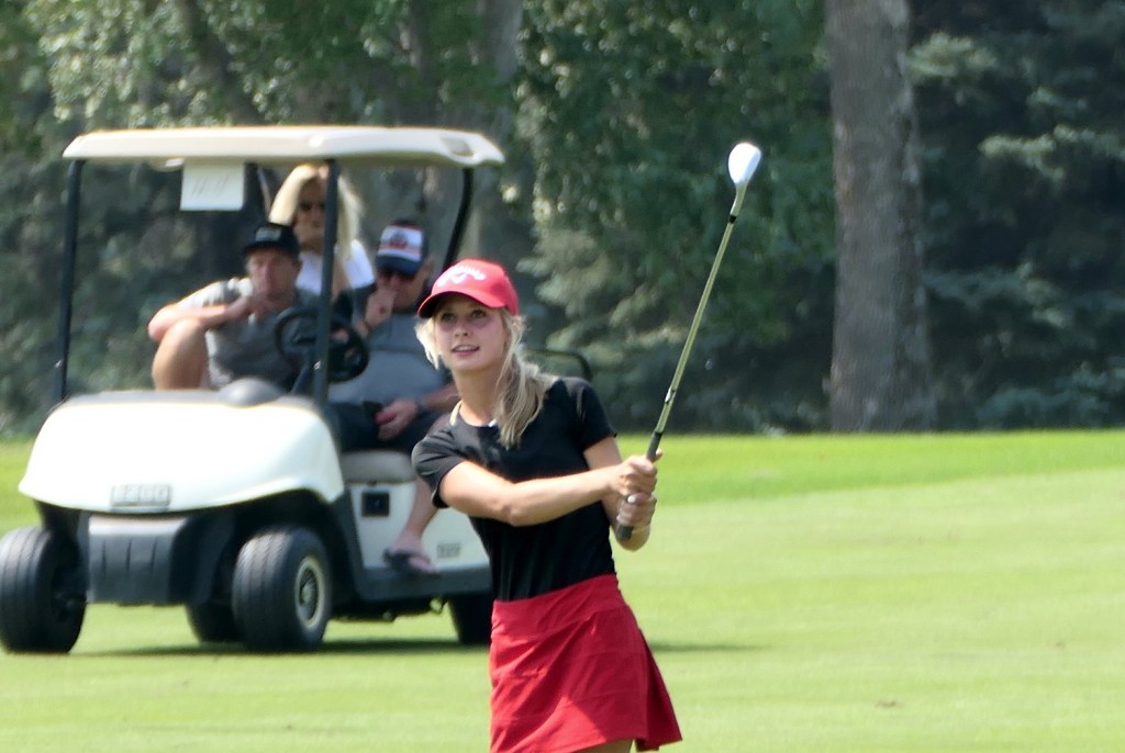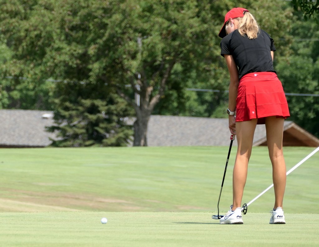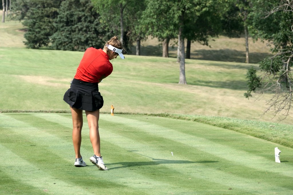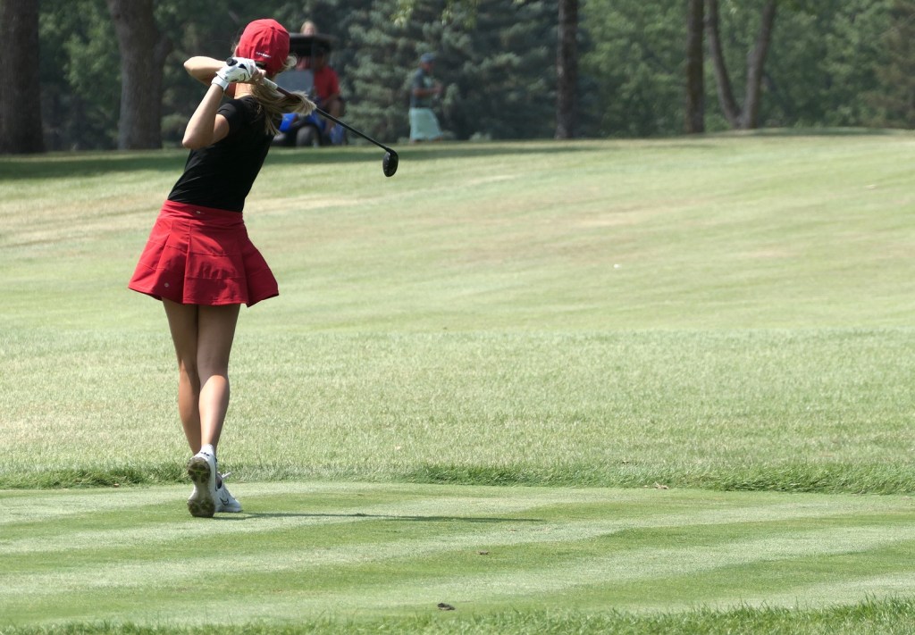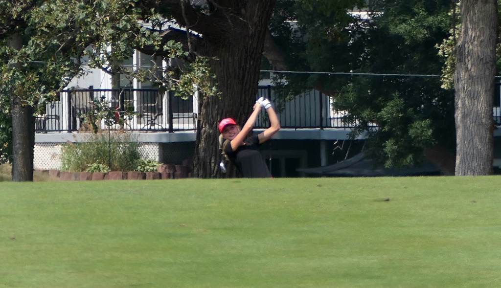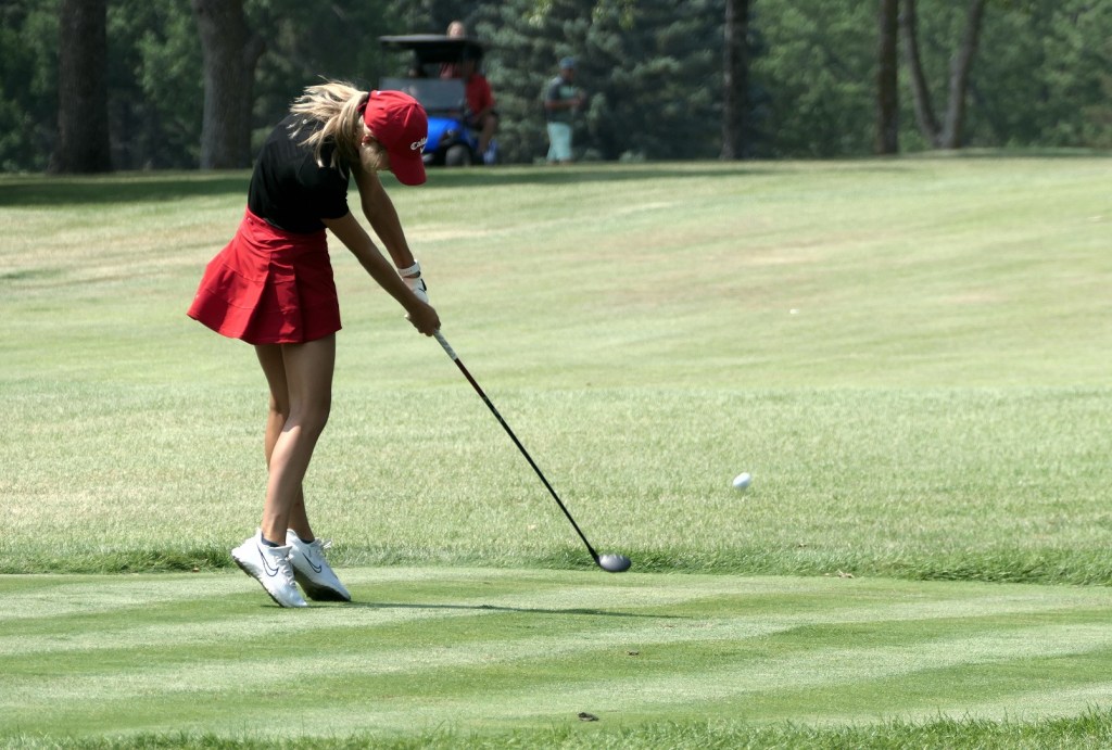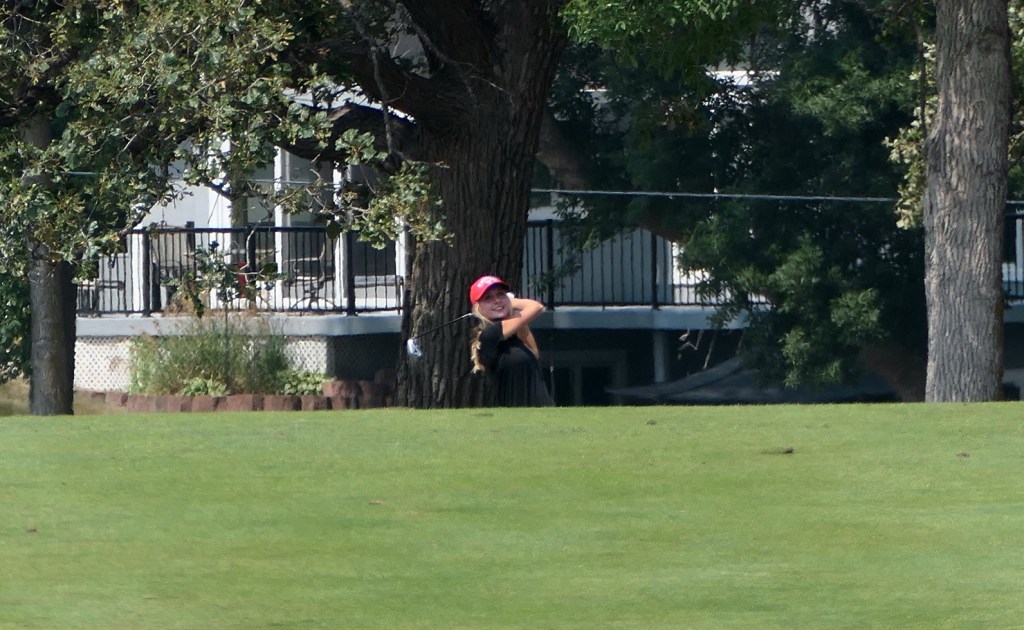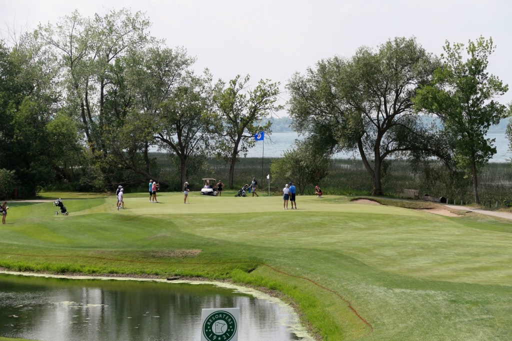 This was Day 5 of the 100th Annual Resorters Golf Tournament. It was serious golf tiime – in the championship quarter finals. As you’ll recall from your readings, the Alexandria High School girls golf team won the state tournament earlier this year by an astounding 22 shots by shooting a team tying record 303 in the 2nd round (top 4 scores on the team, which were 75, 75, 76, and 77). The whole team is made up of underclassmen, as in they’ll all be back again next year. Well, I had never seen any of them play before, so today was going to be the day. Hannah Boraas (a junior-to-be) and Cora Larson (a senior-to-be) were the team leaders all year. They would be in separate contiguous foursomes, so I could follow both, that also contained two previous Resortes winners. Pencils ready, begin . . .