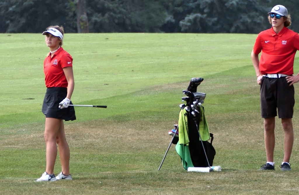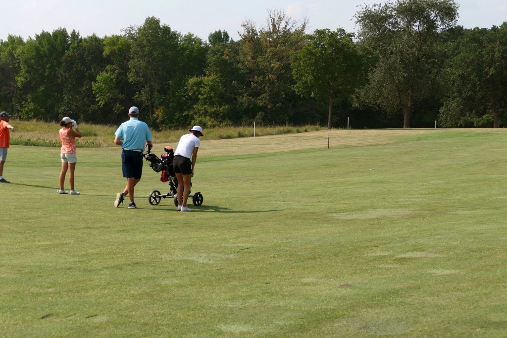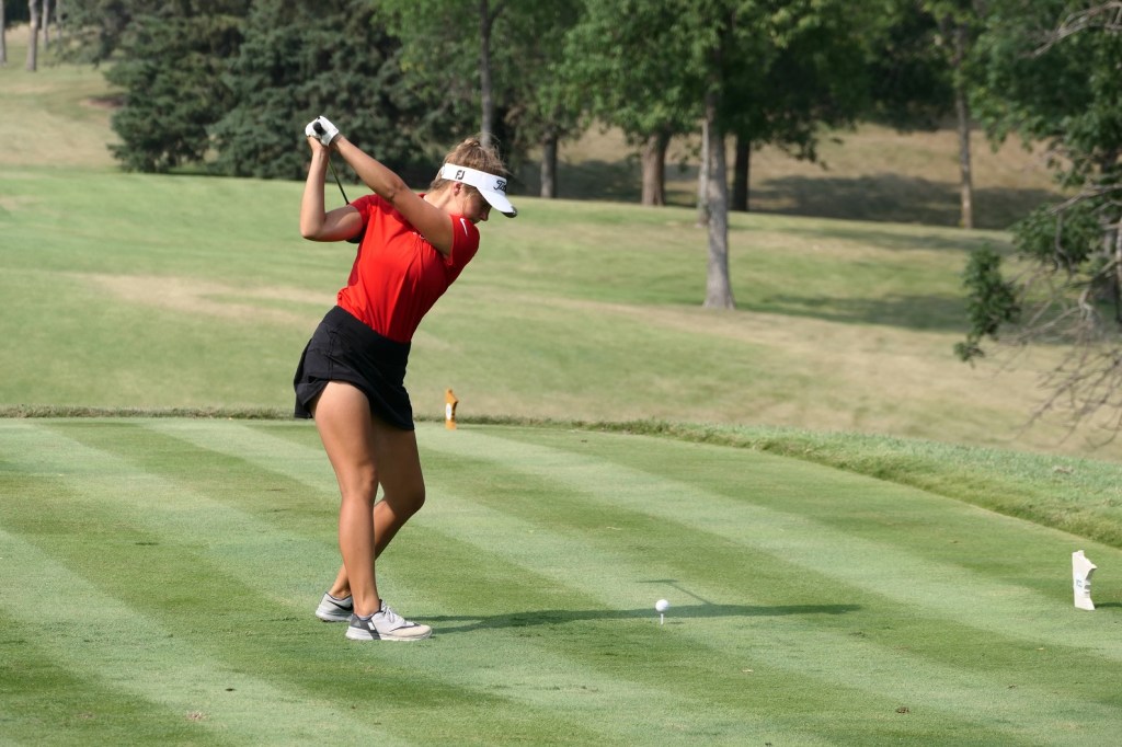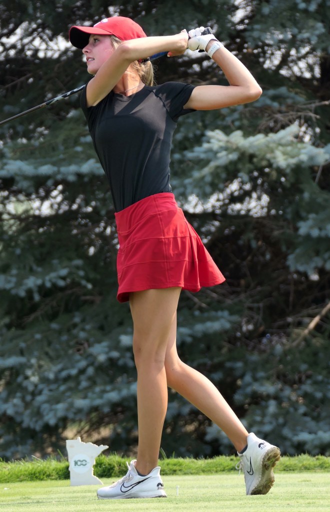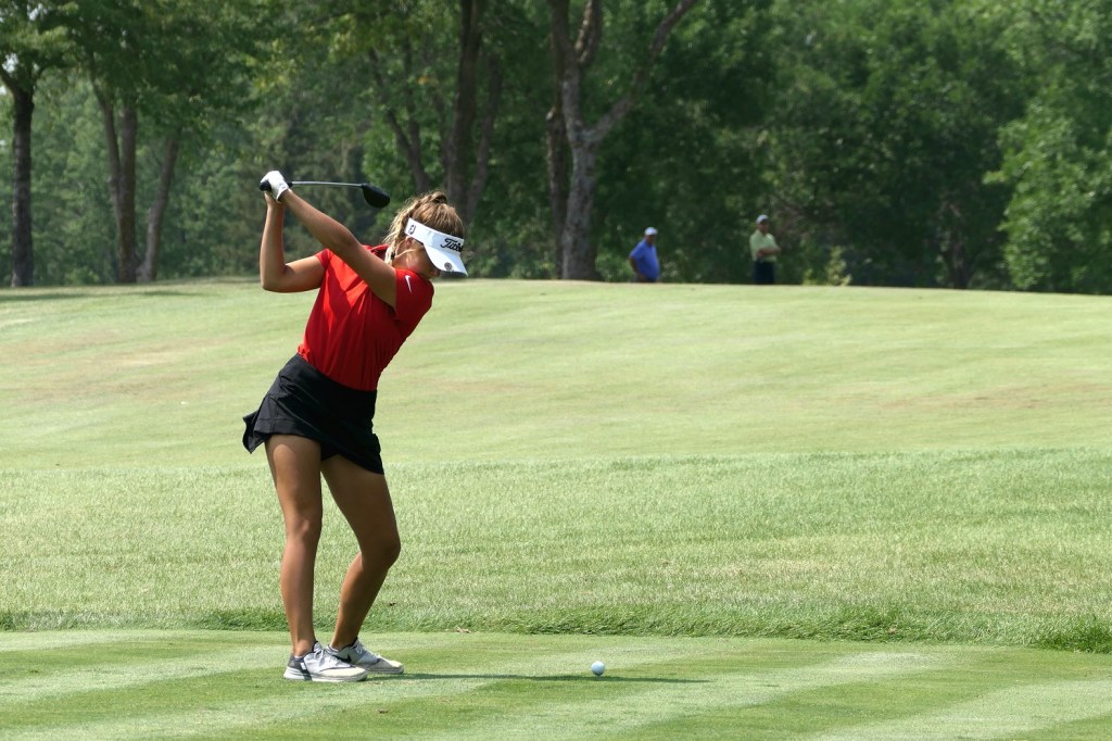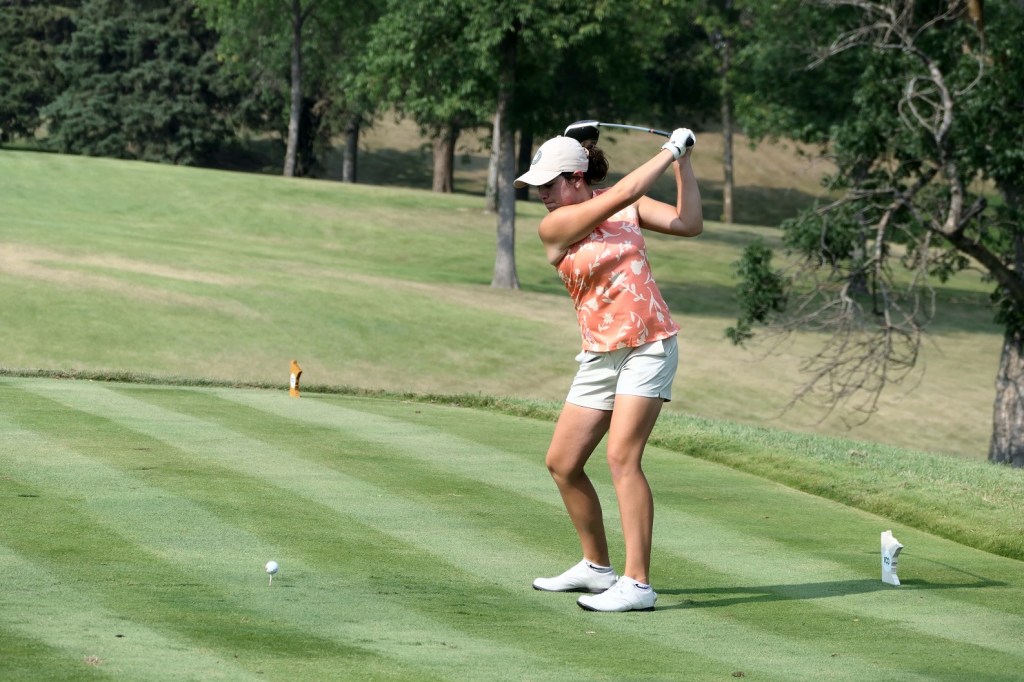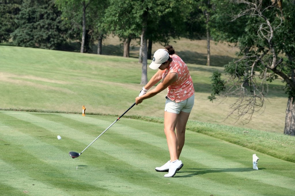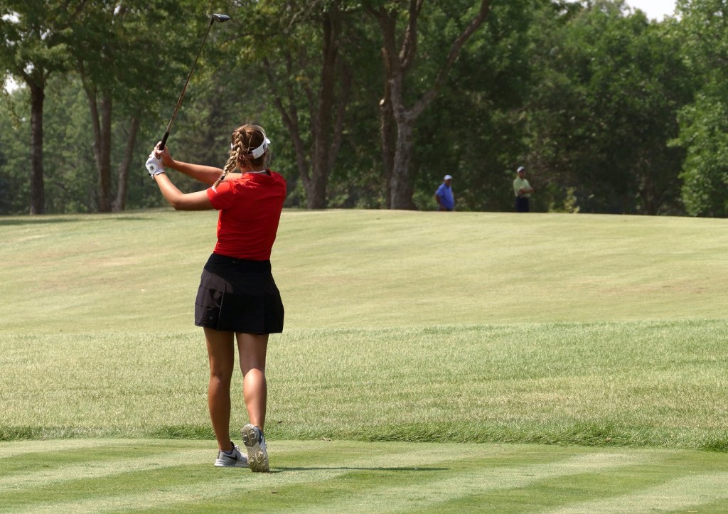 This was Day 5 of the 100th Annual Resorters Golf Tournament. It was serious golf tiime – in the championship quarter finals. As you’ll recall from your readings, the Alexandria High School girls golf team won the state tournament earlier this year by an astounding 22 shots by shooting a team tying record 303 in the 2nd round (top 4 scores on the team, which were 75, 75, 76, and 77). The whole team is made up of underclassmen, as in they’ll all be back again next year. Well, I had never seen any of them play before, so today was going to be the day. Hannah Boraas (a junior-to-be) and Cora Larson (a senior-to-be) were the team leaders all year. They would be in separate contiguous foursomes, so I could follow both, that also contained two previous Resortes winners. Pencils ready, begin . . .