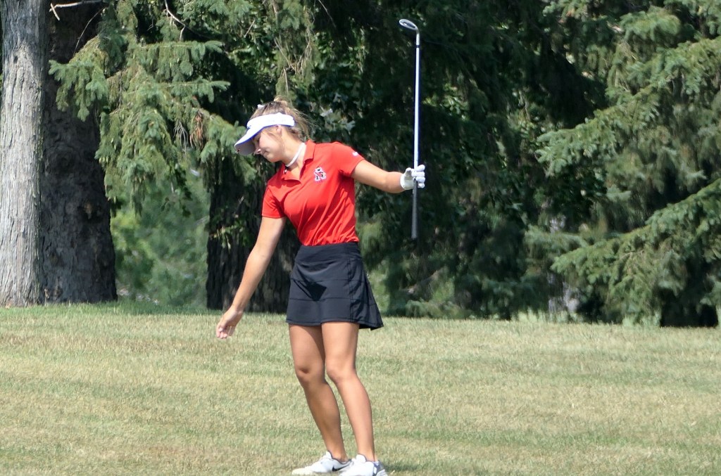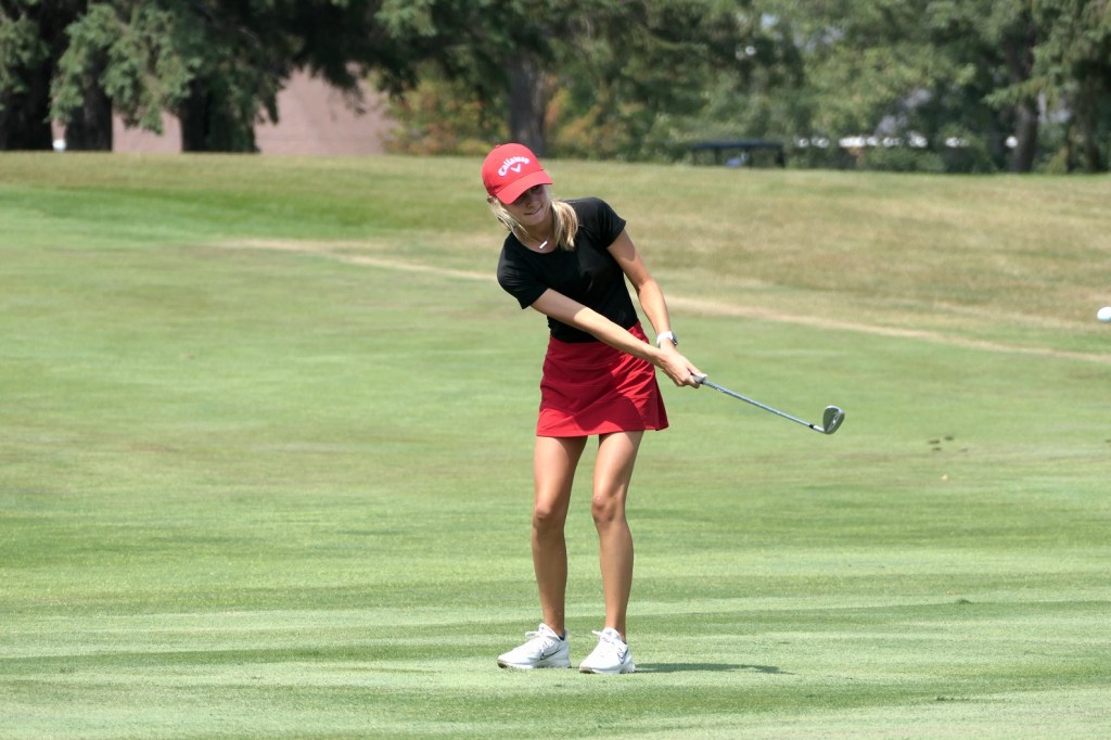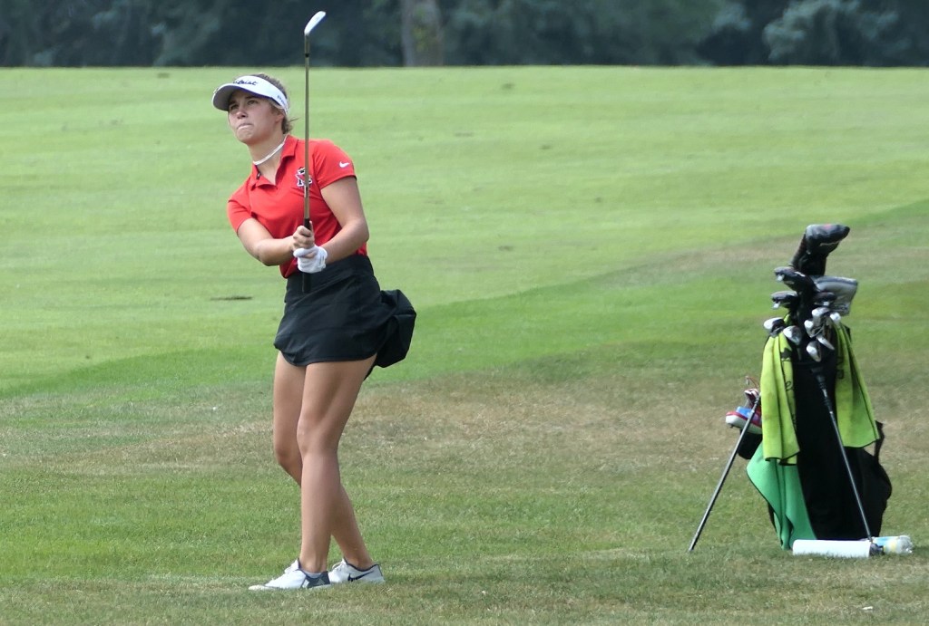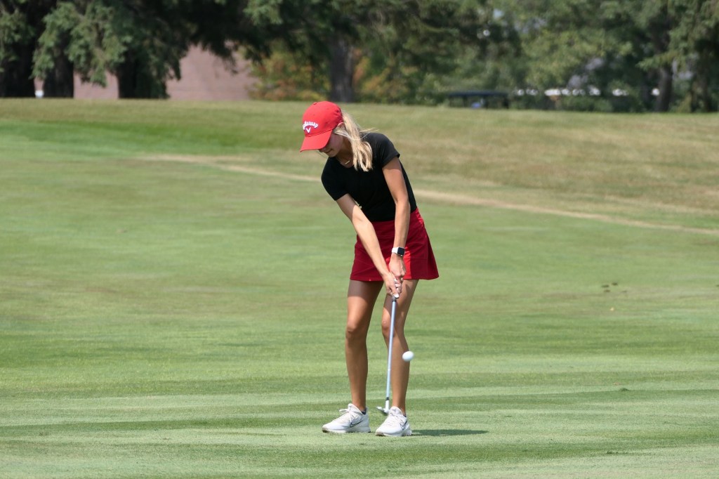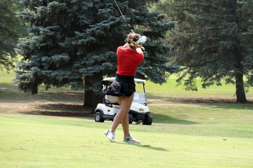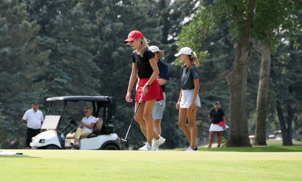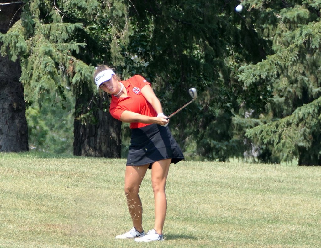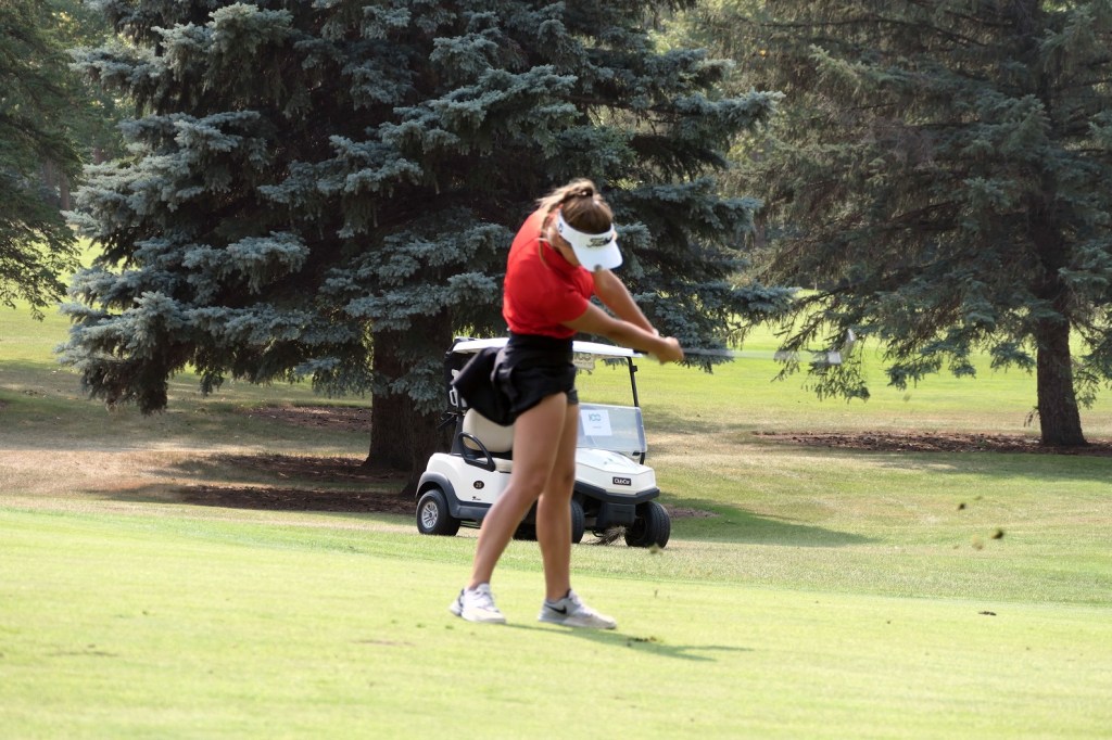 This was Day 5 of the 100th Annual Resorters Golf Tournament. It was serious golf tiime – in the championship quarter finals. As you’ll recall from your readings, the Alexandria High School girls golf team won the state tournament earlier this year by an astounding 22 shots by shooting a team tying record 303 in the 2nd round (top 4 scores on the team, which were 75, 75, 76, and 77). The whole team is made up of underclassmen, as in they’ll all be back again next year. Well, I had never seen any of them play before, so today was going to be the day. Hannah Boraas (a junior-to-be) and Cora Larson (a senior-to-be) were the team leaders all year. They would be in separate contiguous foursomes, so I could follow both, that also contained two previous Resortes winners. Pencils ready, begin . . .