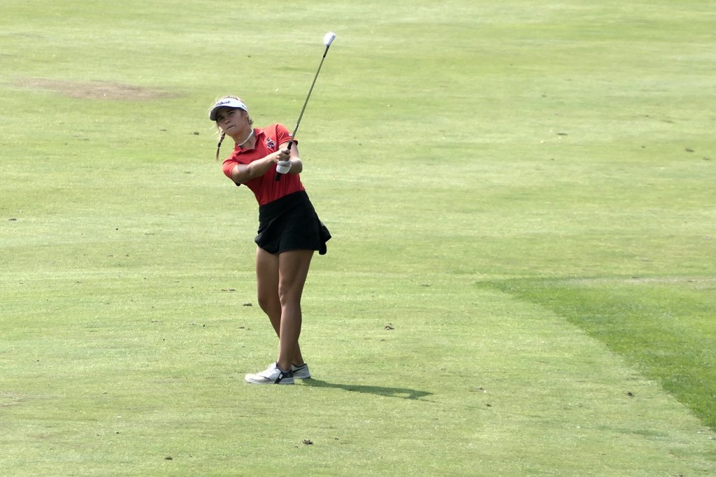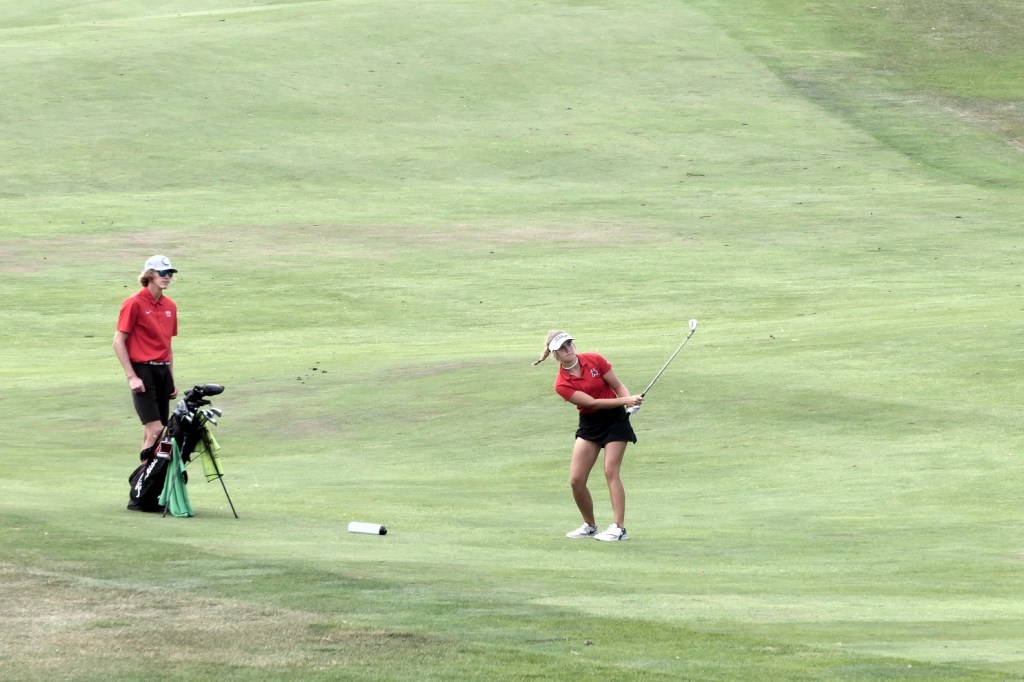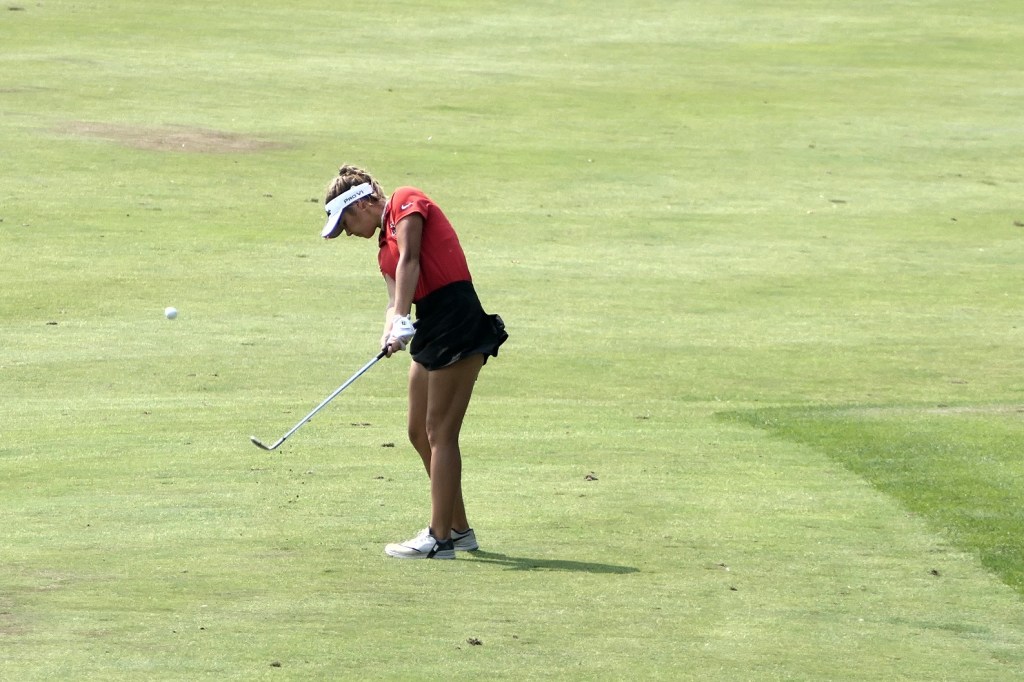 [Hannah hitting off the ever treacherous down hill lie . . . ]
