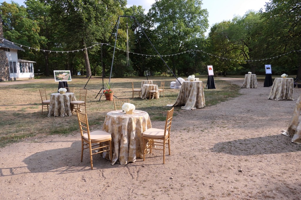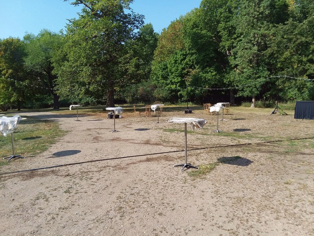 [I, happy home maker that I am, table clothed the tables and cushioned the chairs . . . ]