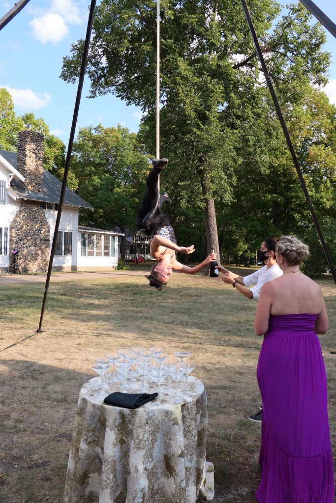 [Lynn pours a champagne for Nicole from a unique position . . . ]
