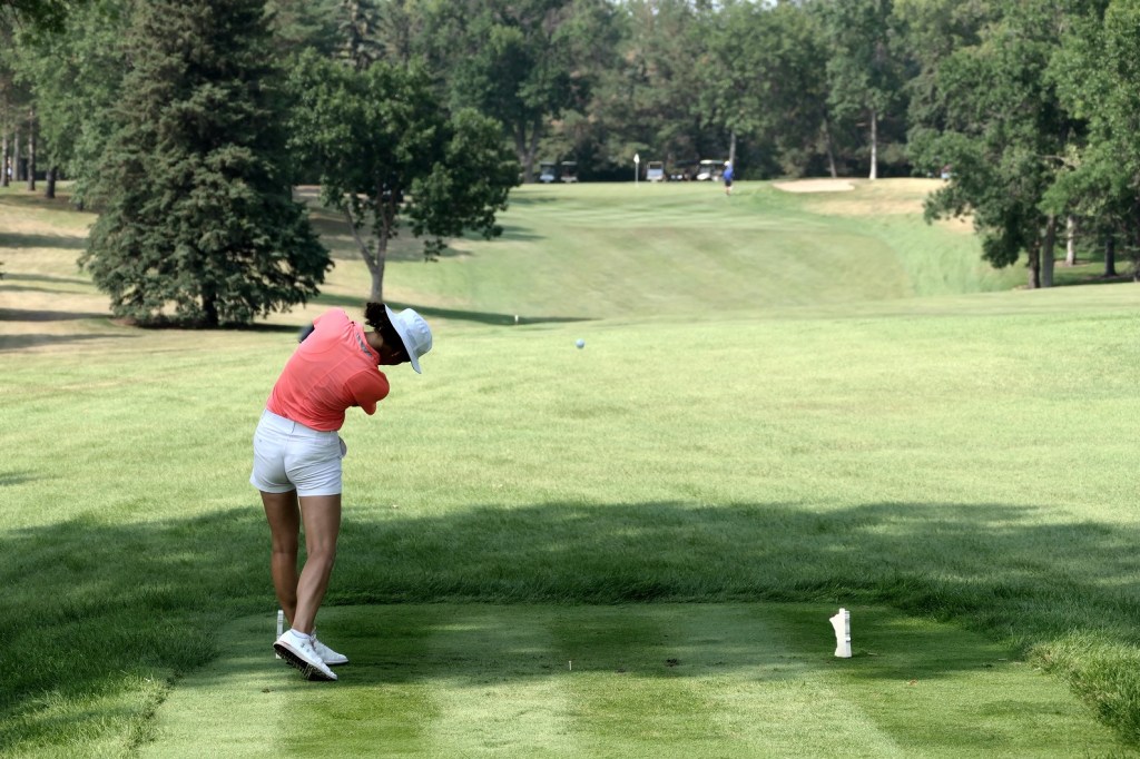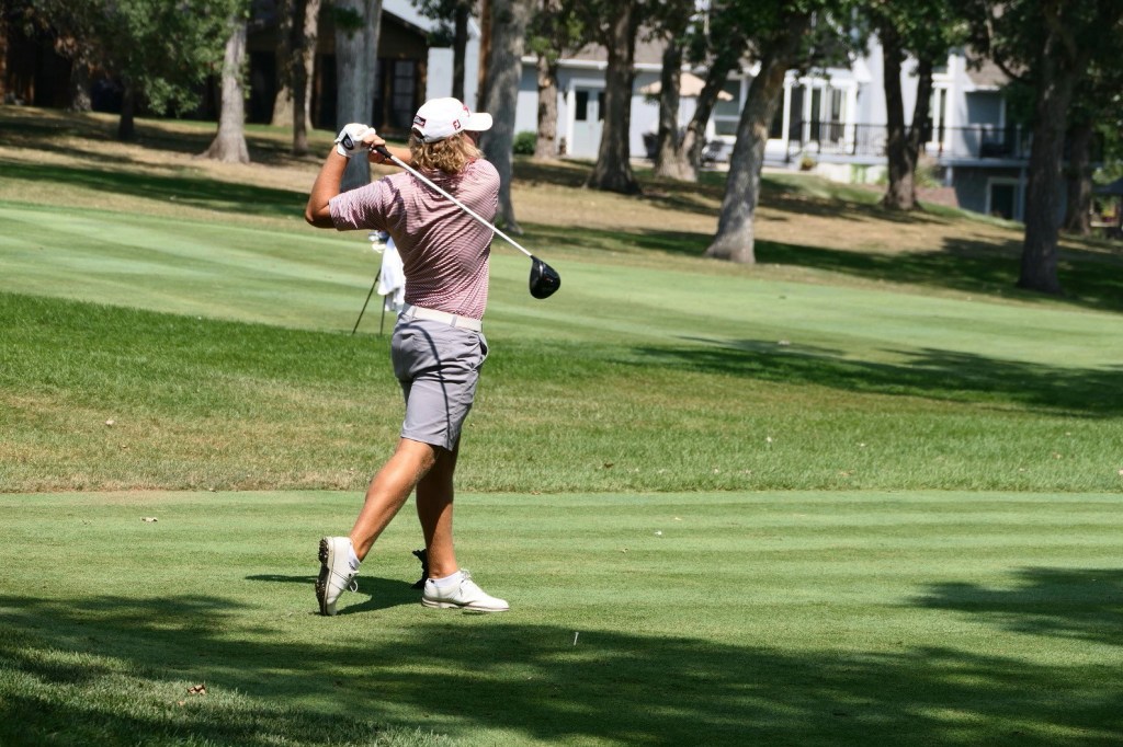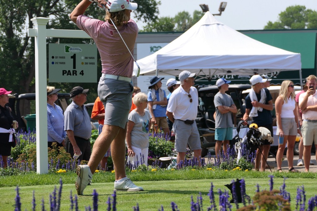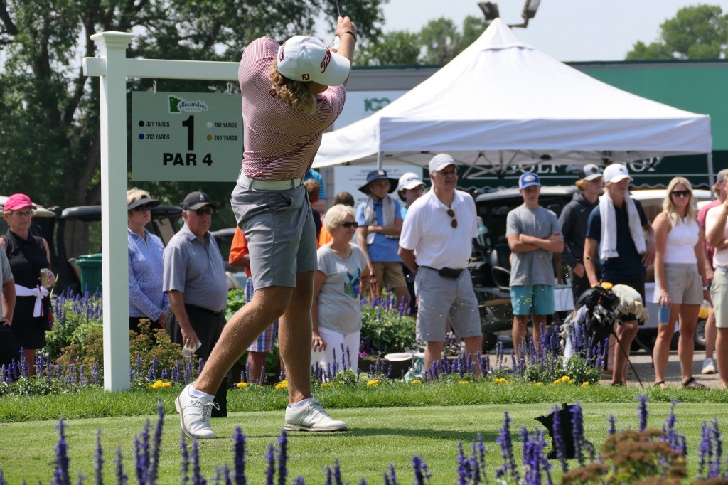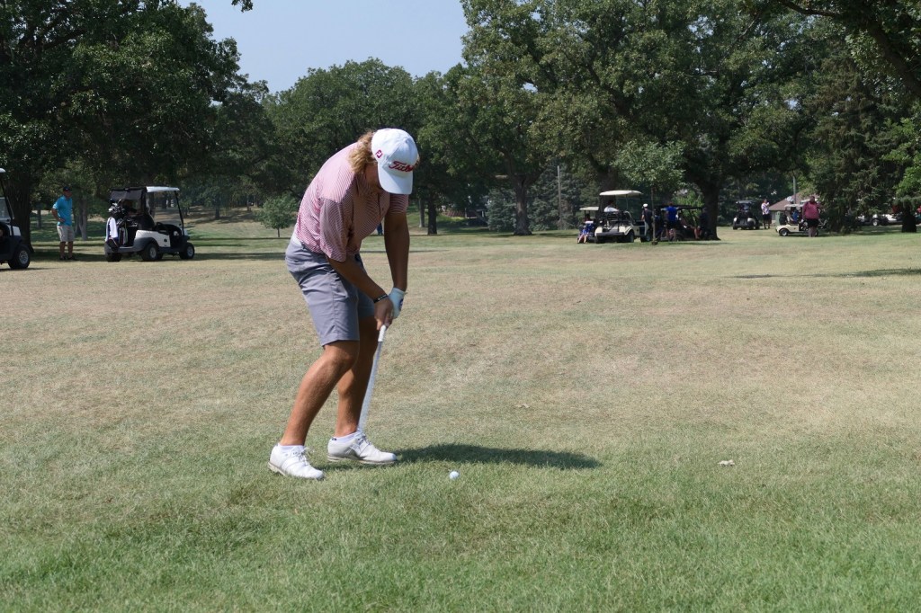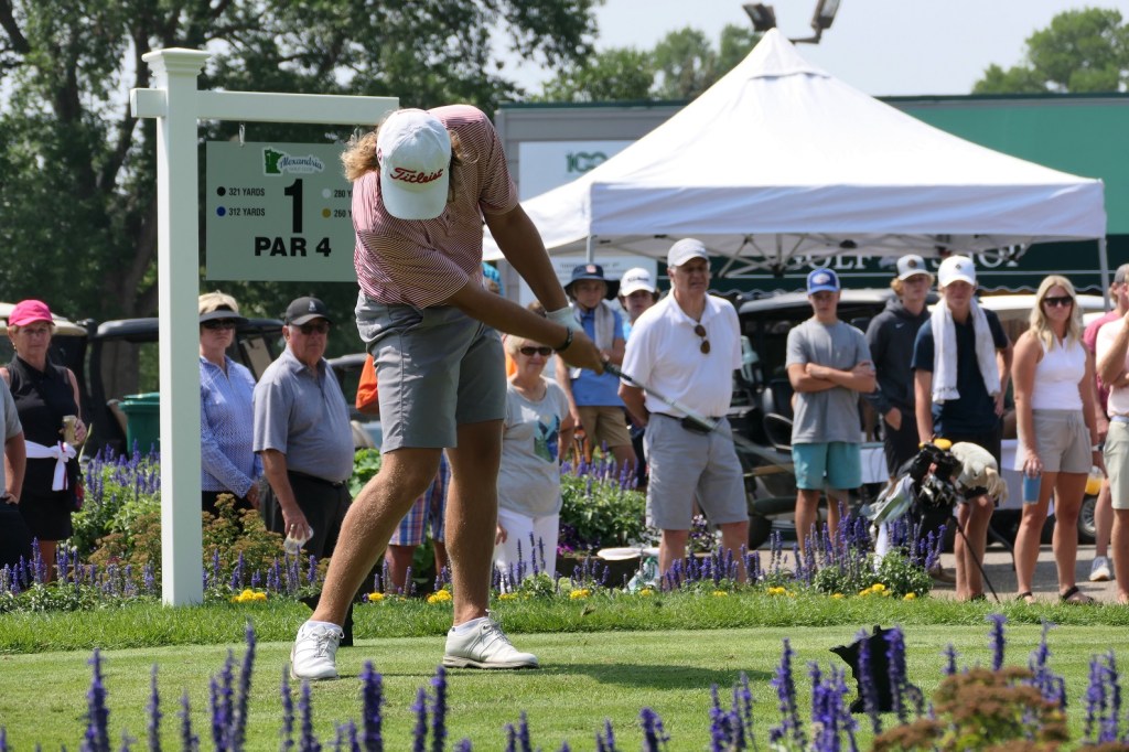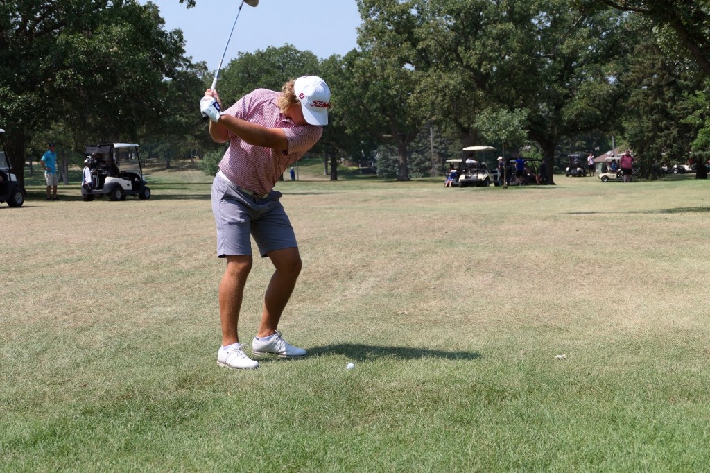 [I left the women for a bit to check on another Alexandria wunderkind. I had yet to see Braeden Sladek play, though he has been playing at the national level since he was 11 or 12. He will be entering his junior year of high school (so, has classmates among the state champion girls team). I’m back at the 1st tee to watch him tee off in the quarter finals of the mens’ championship level . . . ]
