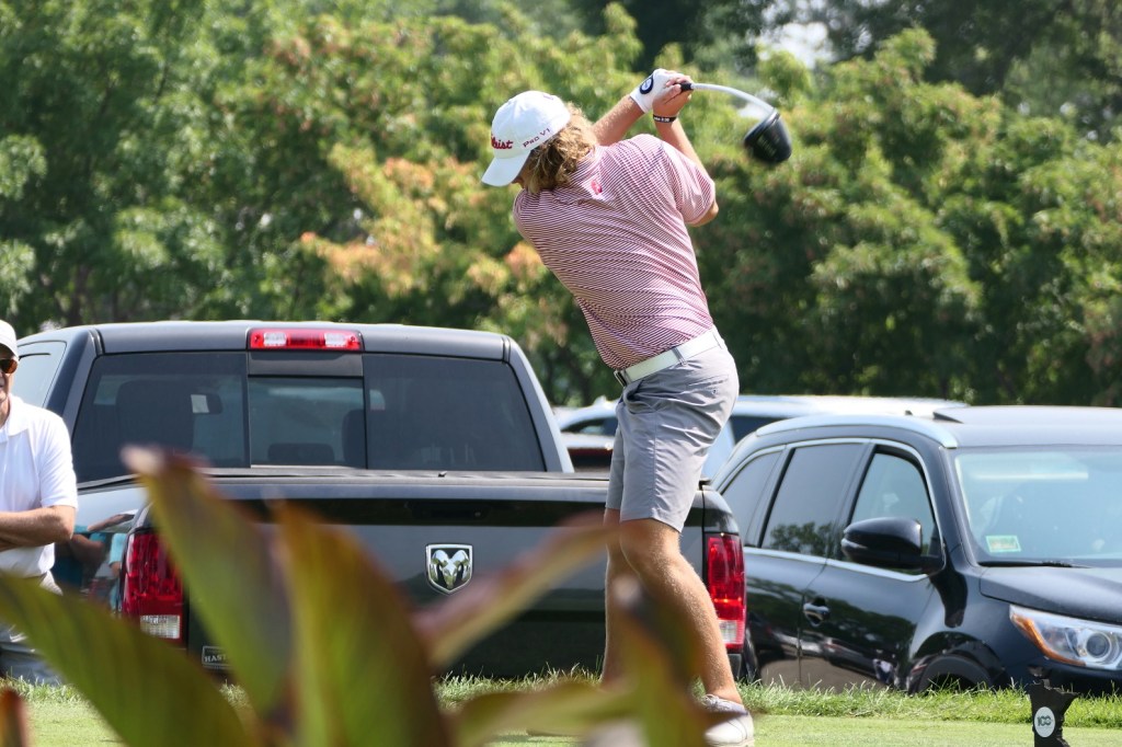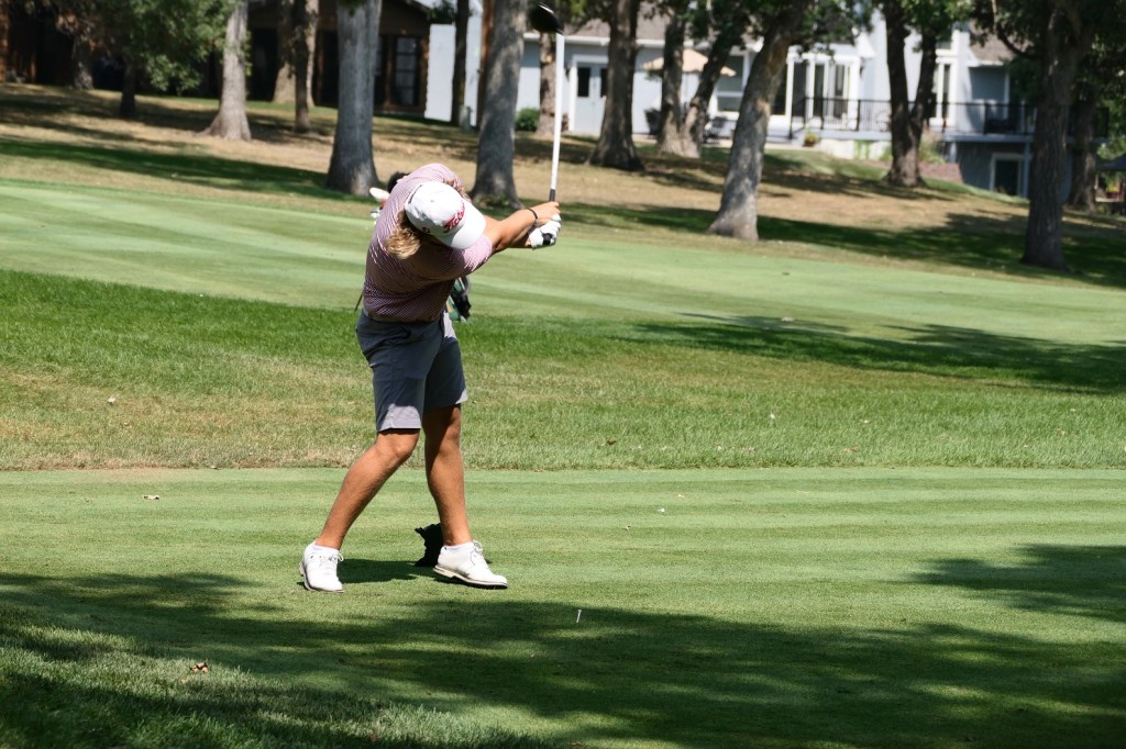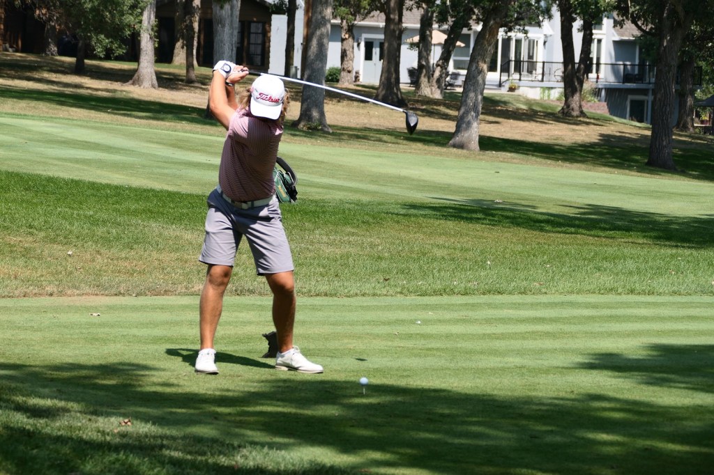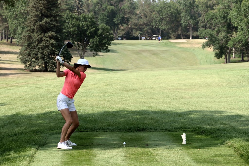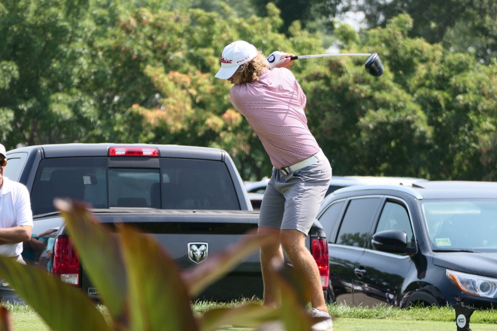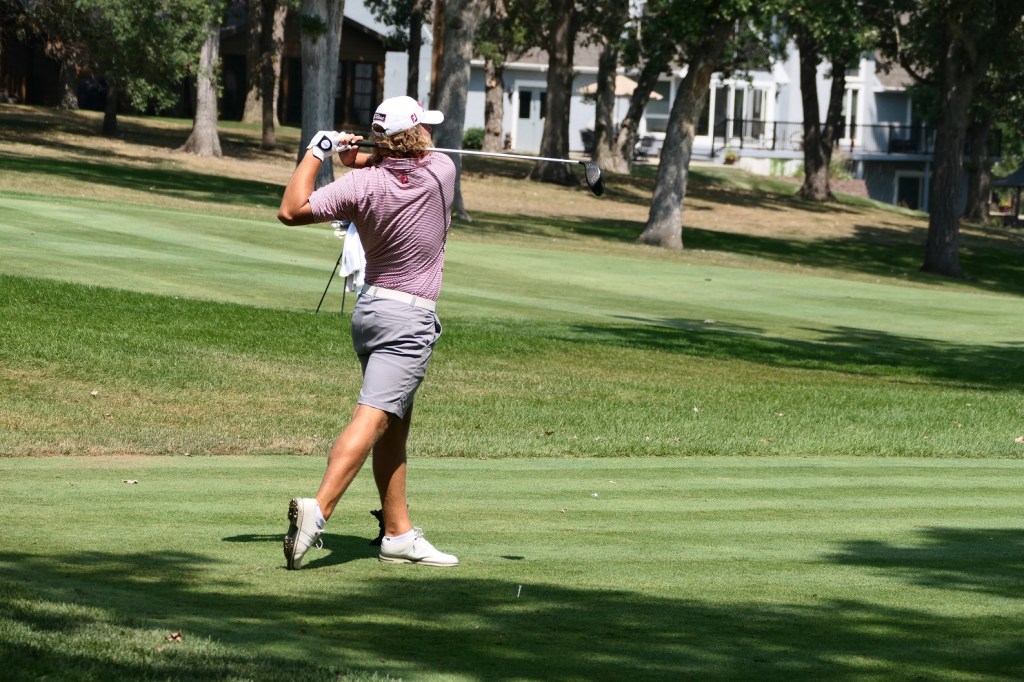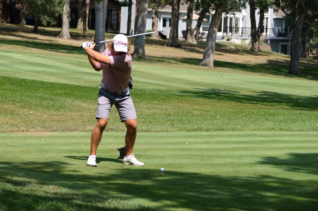 [I left the women for a bit to check on another Alexandria wunderkind. I had yet to see Braeden Sladek play, though he has been playing at the national level since he was 11 or 12. He will be entering his junior year of high school (so, has classmates among the state champion girls team). I’m back at the 1st tee to watch him tee off in the quarter finals of the mens’ championship level . . . ]