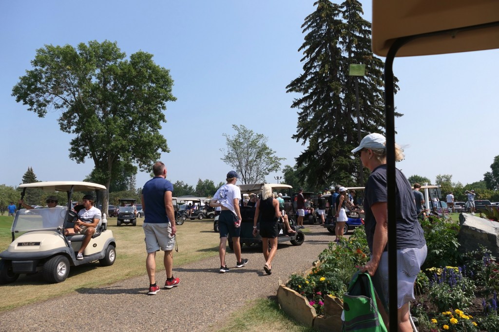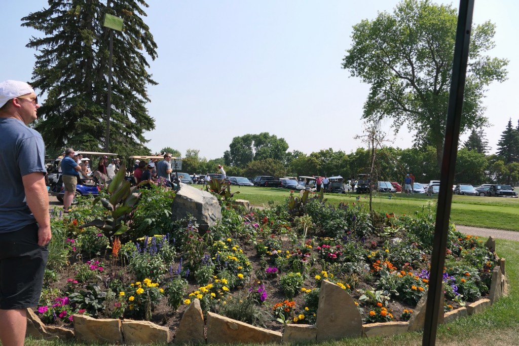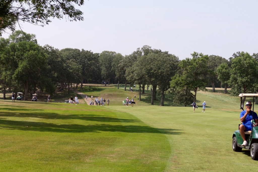 [He was the last of his foursome to hit. The other players hit drivers on this short par 4 – but like most club members (such as myself in my day) Braeden hit an iron for position . . . ]