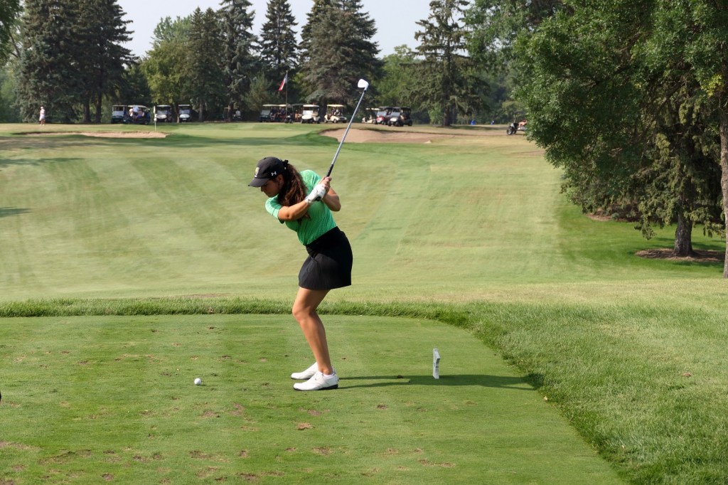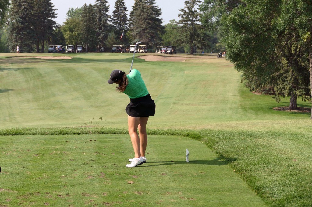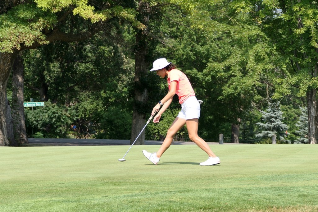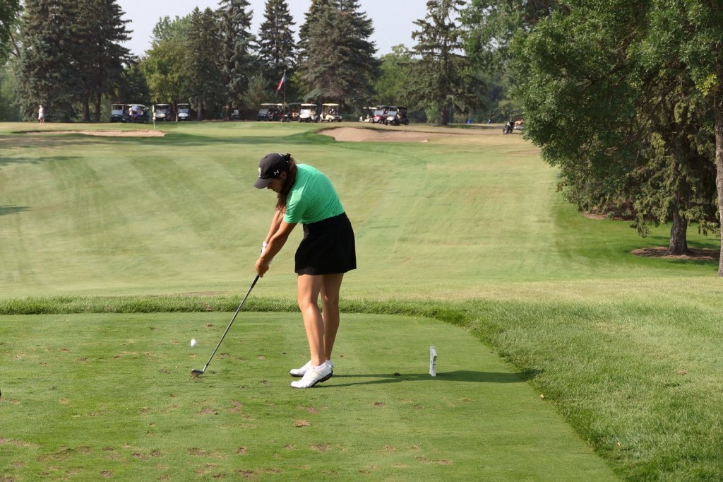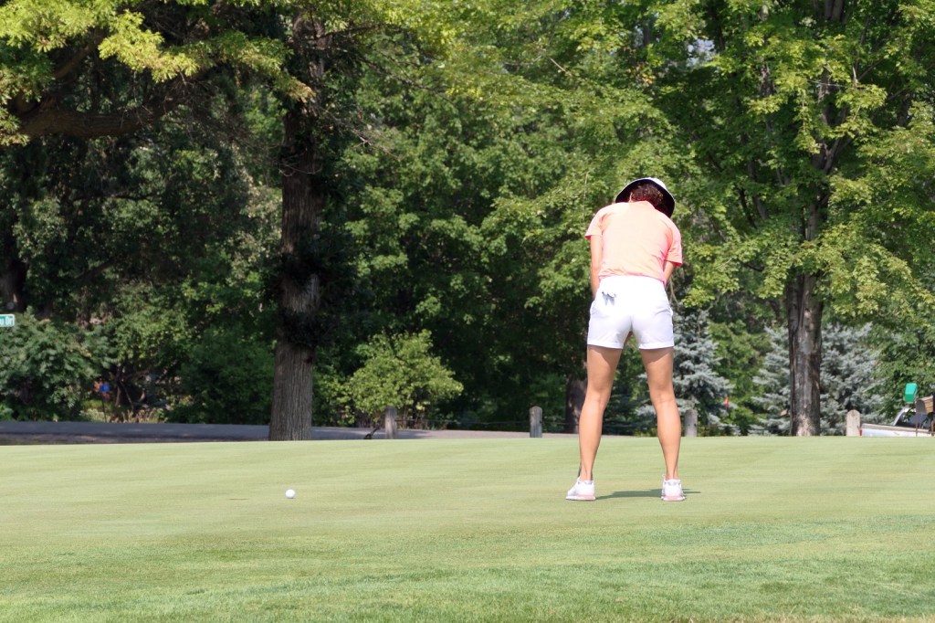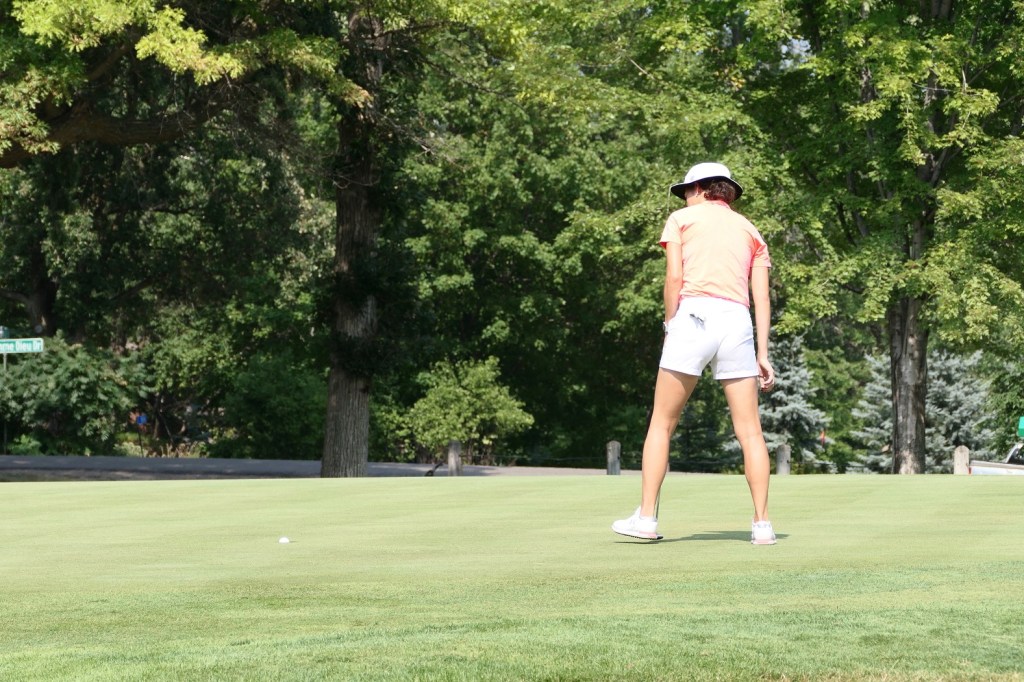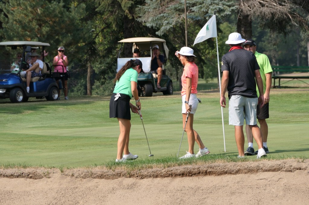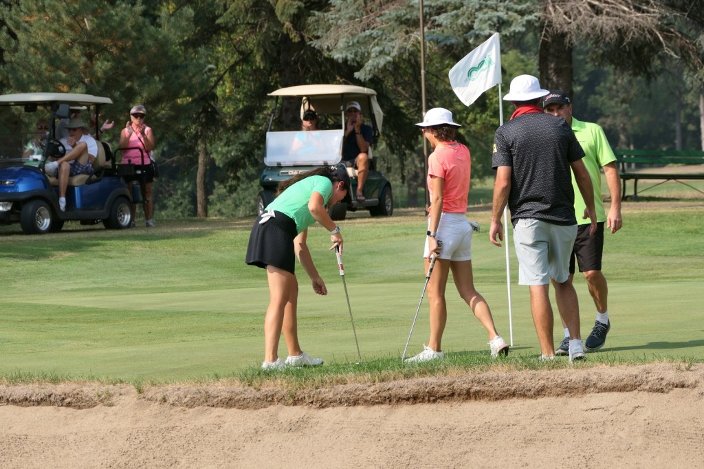 [Hole #17, par 3, Alayna hitting is currently 1-up on Ale . . . ]