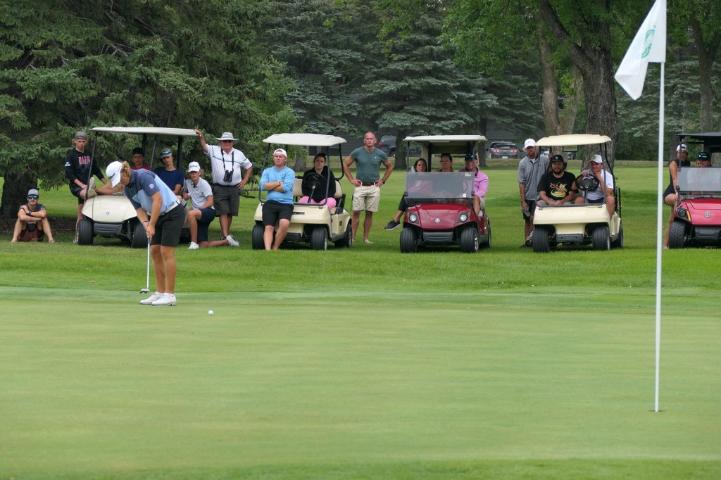 [Kelly could not up and down from behind the green – Braeden wins!]
