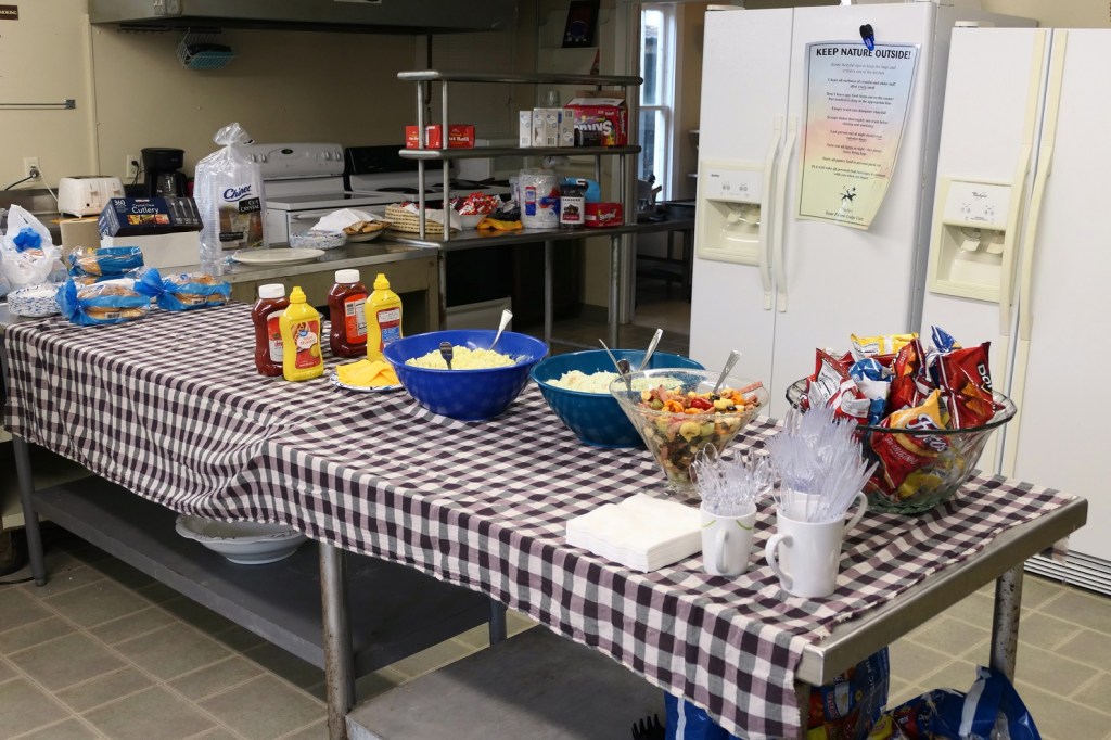 [The theatre board president chefs under the watchful eye of a retired pharmacist . . . ]