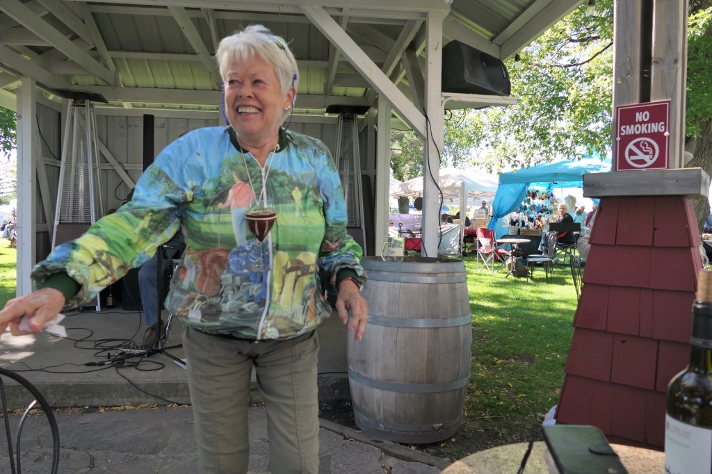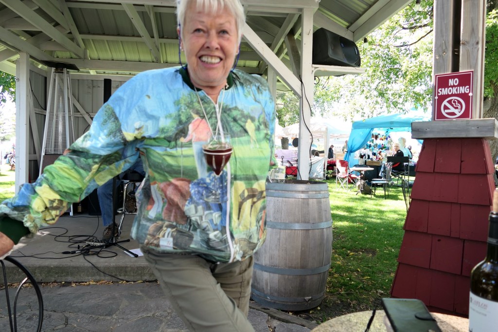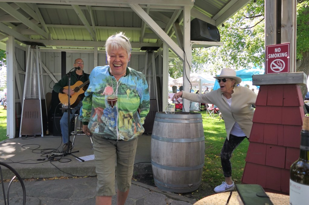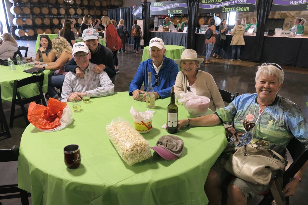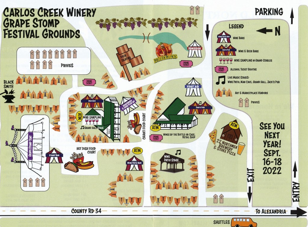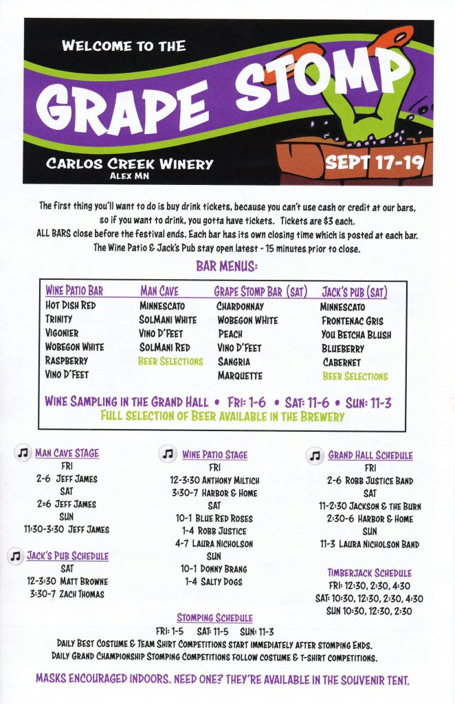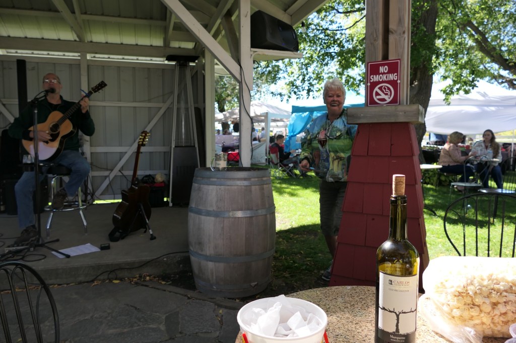 The annual event at Carlos Creek Winery which marks the harvest season for grapes plucked to be stomped upon. This stomping action is the initial process of making wine because whole grapes do not fit in a wine bottle. If they were making quacamole, they would harvest avocados to be peeled, sliced and diced, and tread upon. But they don’t. They grow grapes. Thus a harvest season event entitled grape stomp seems appropriate. Further thus, I then should not have digressed . . .