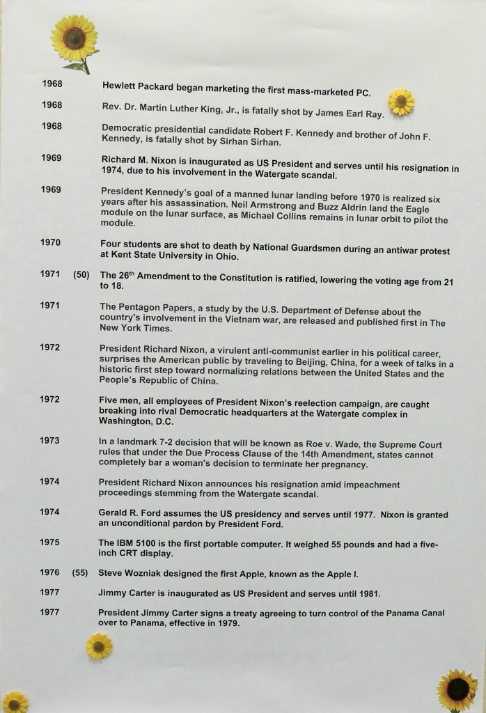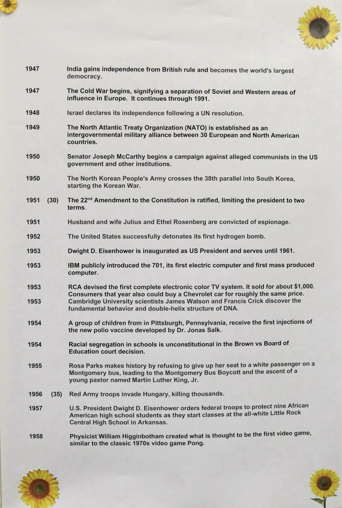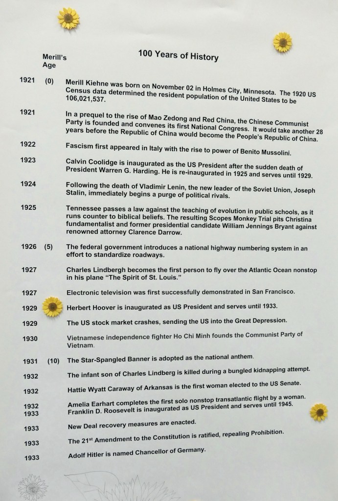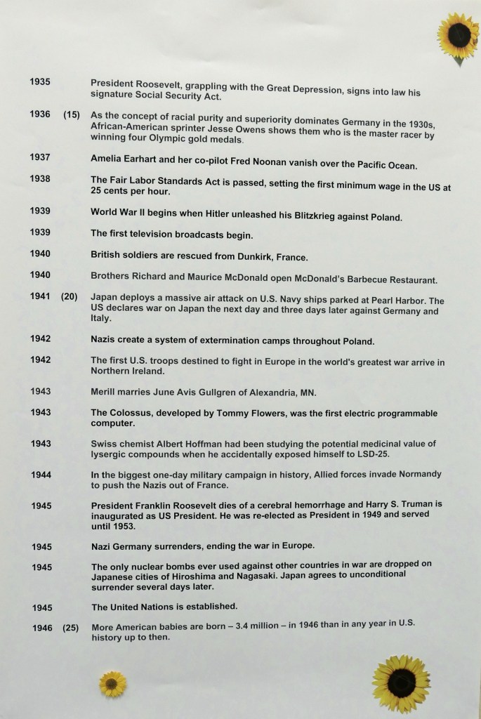 What has happened in Merill’s lifetime (compiled by spouses Pam and Tom) . . .