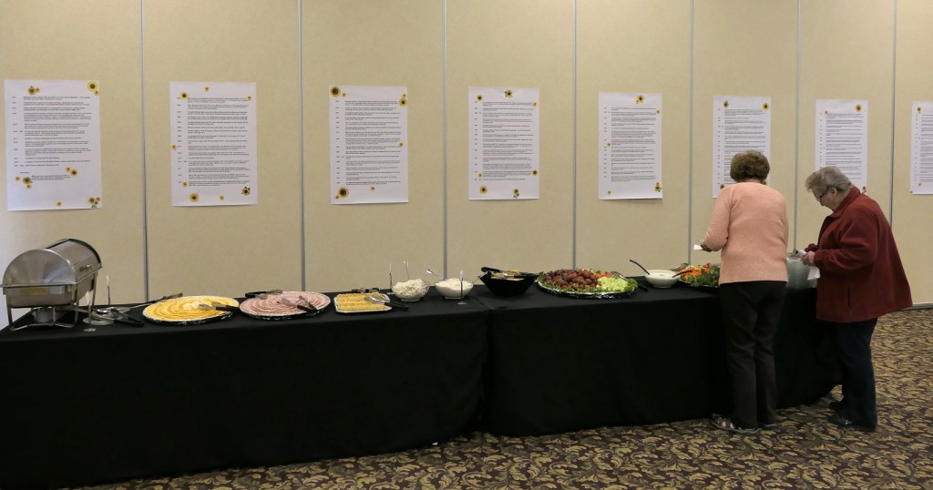 [The buffet table – the posters on the wall appear toward the bottom of this missive . . . ]
