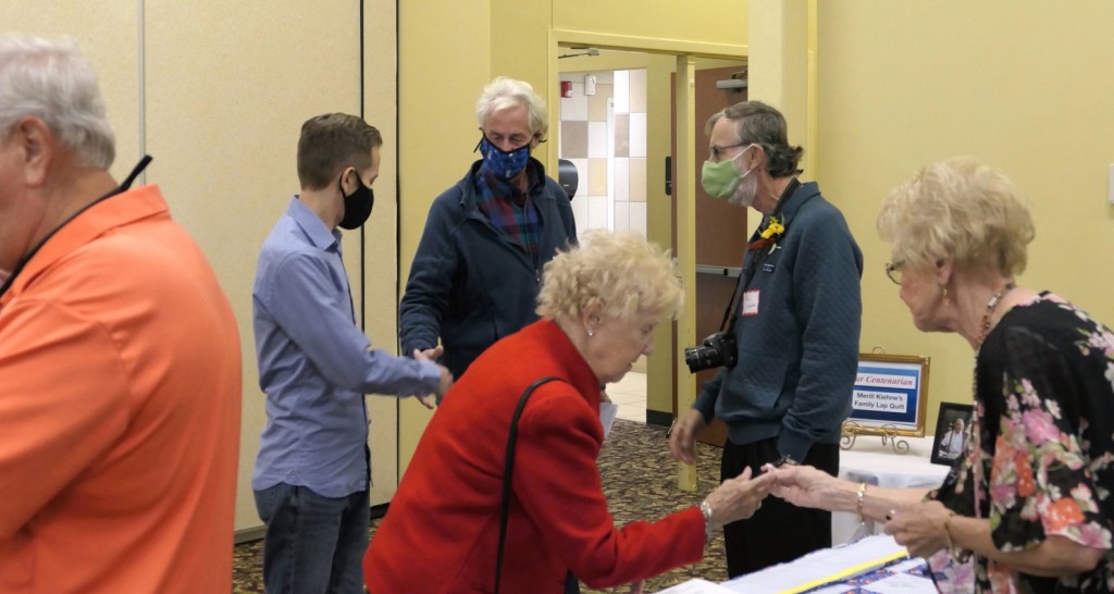 [Class of ’65er Mayo arrives and shakes hands with Tom’s son Steven . . . ]