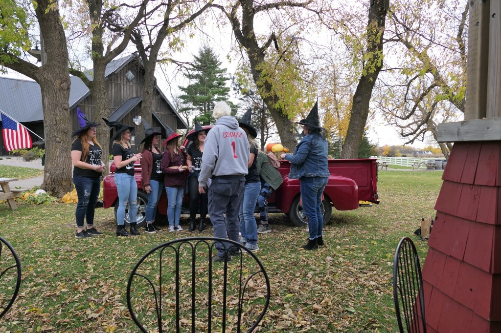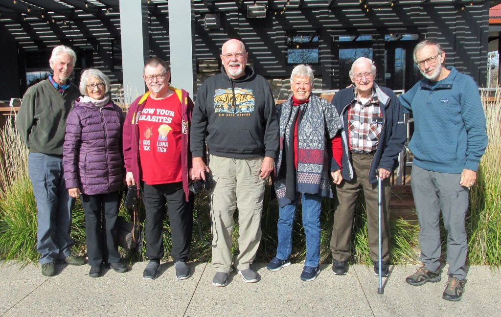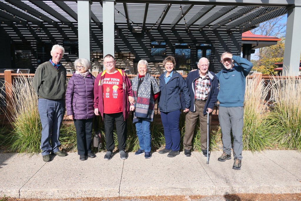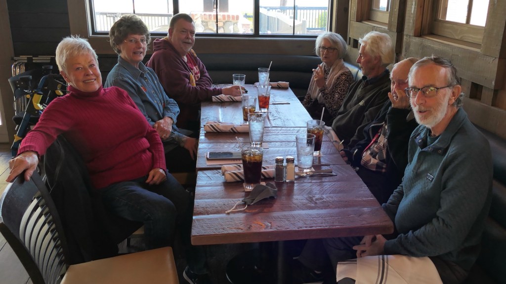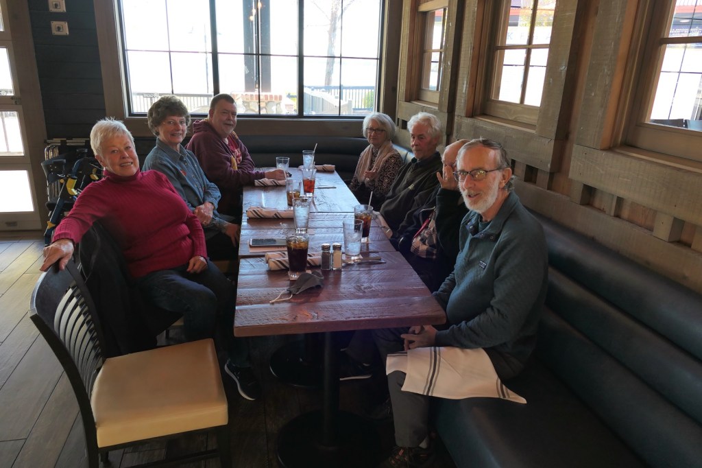 [This was the second week of Merill’s 100th birthday celebration. Here the Boys of ’65, with spouses, went to lunch in what was obviously a lovely late October day in Minnesota. (Photo by Tom’s (far right) wife Pam at Lure Lakebar.)]