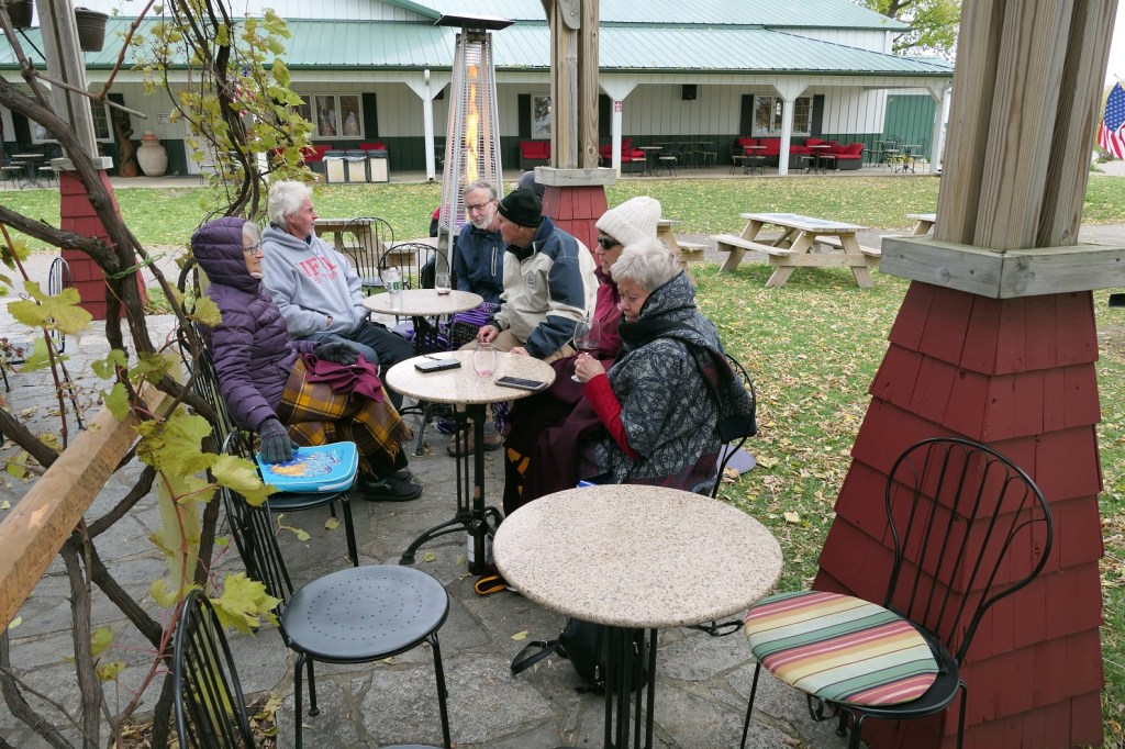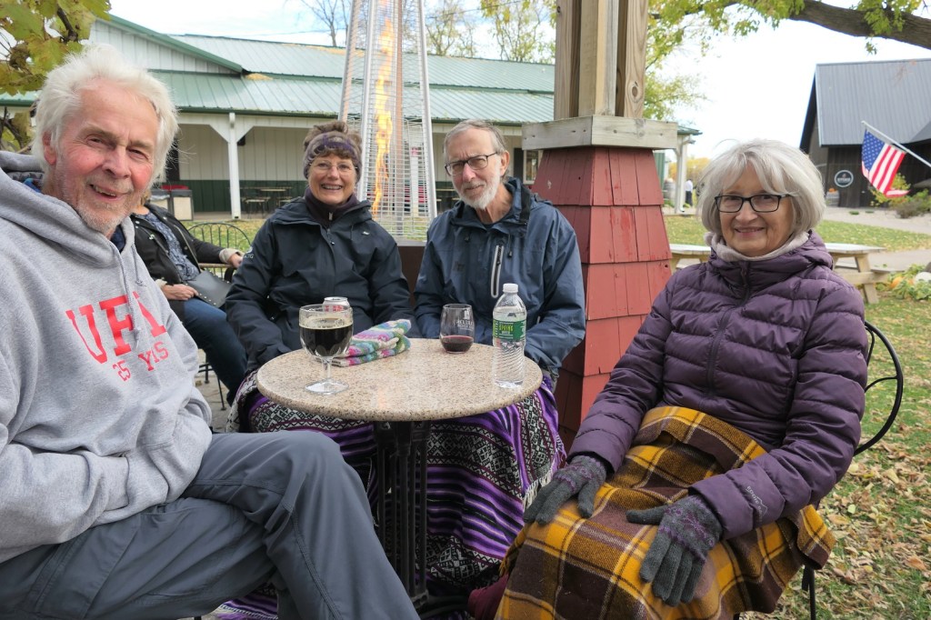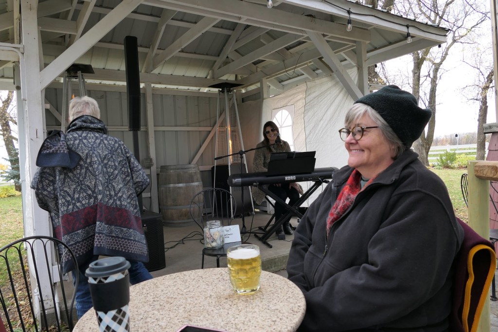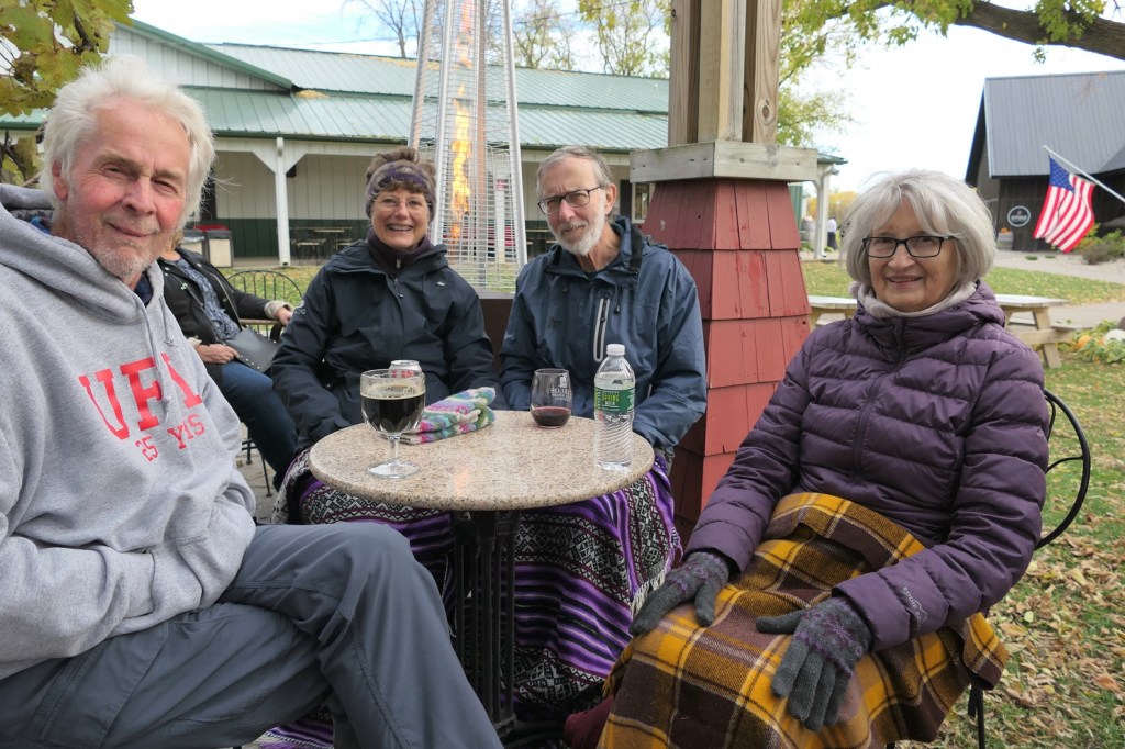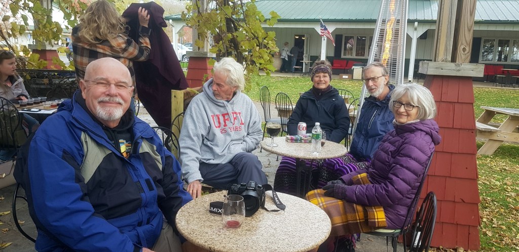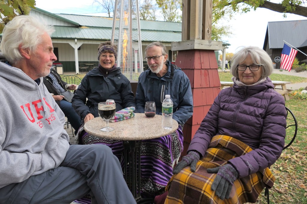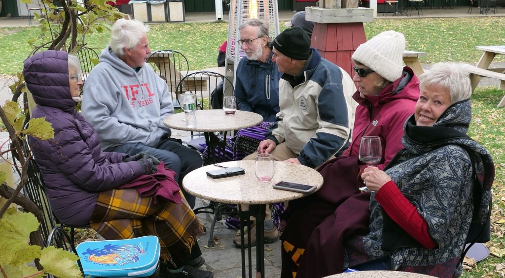 [We were there for a little outdoor music with Elsa Lee. I told everyone to dress for a football game. Although the temperature was actually in the low 50’s, it grew cloudy with a stiff wind out of the northwest . . . ]
