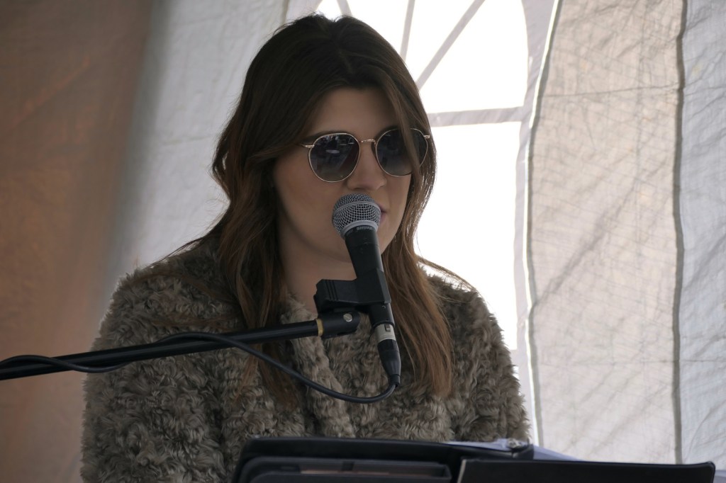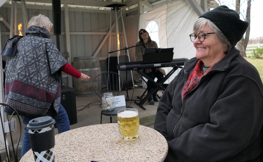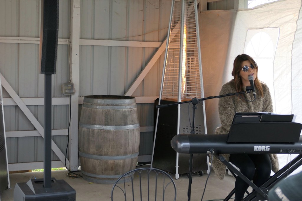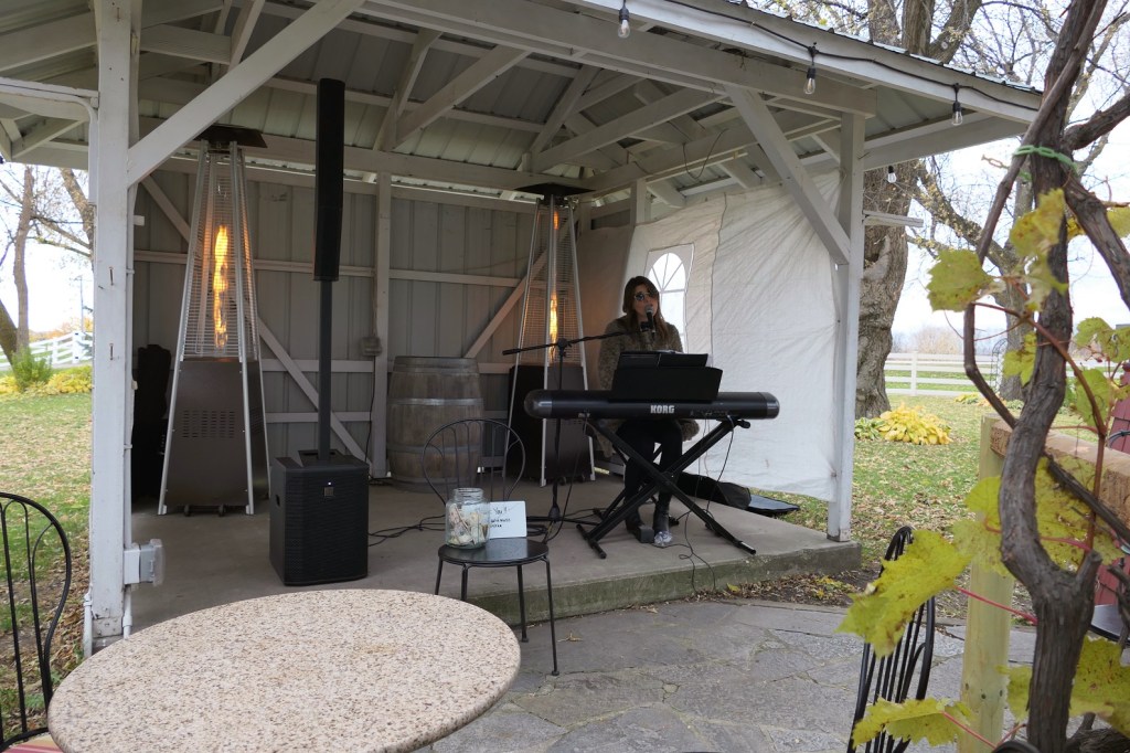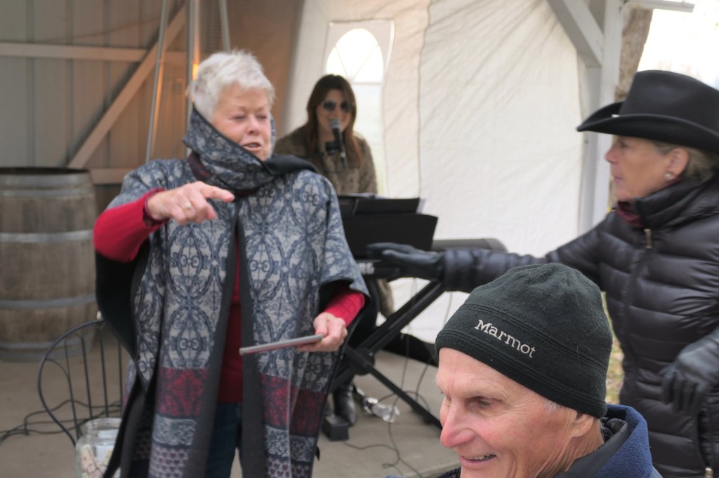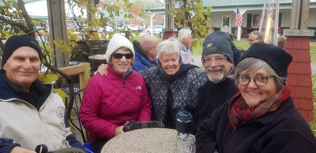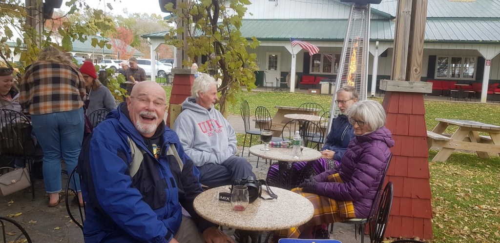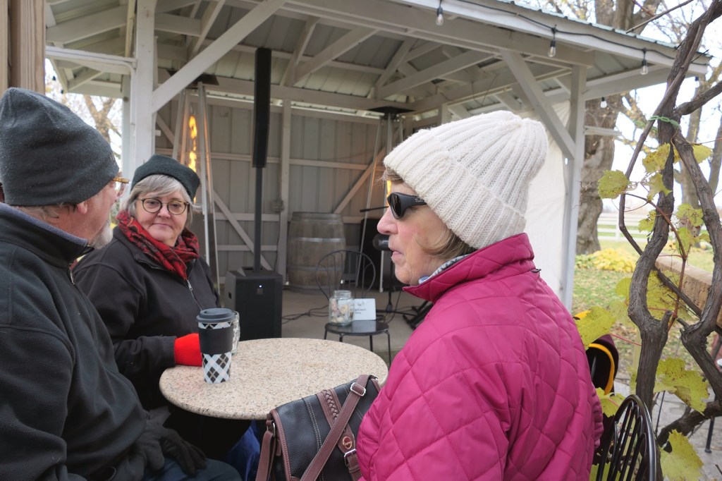 [We were there for a little outdoor music with Elsa Lee. I told everyone to dress for a football game. Although the temperature was actually in the low 50’s, it grew cloudy with a stiff wind out of the northwest . . . ]