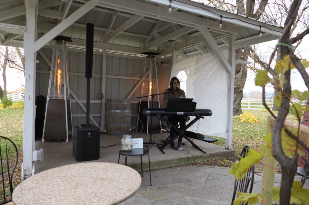 [The “bandstand” had heaters and windbreaks which a piano player appreciates . . . ]