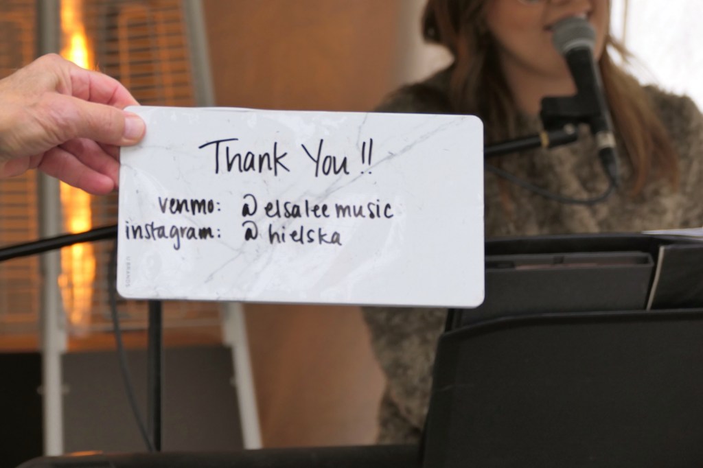 [With the aforementioned Elsa Lee, Ruthie always puts bread in her jar when she sings Elton John’s “Border Song”. We were joined in the foreground by fellow music aficionado Deb . . .]