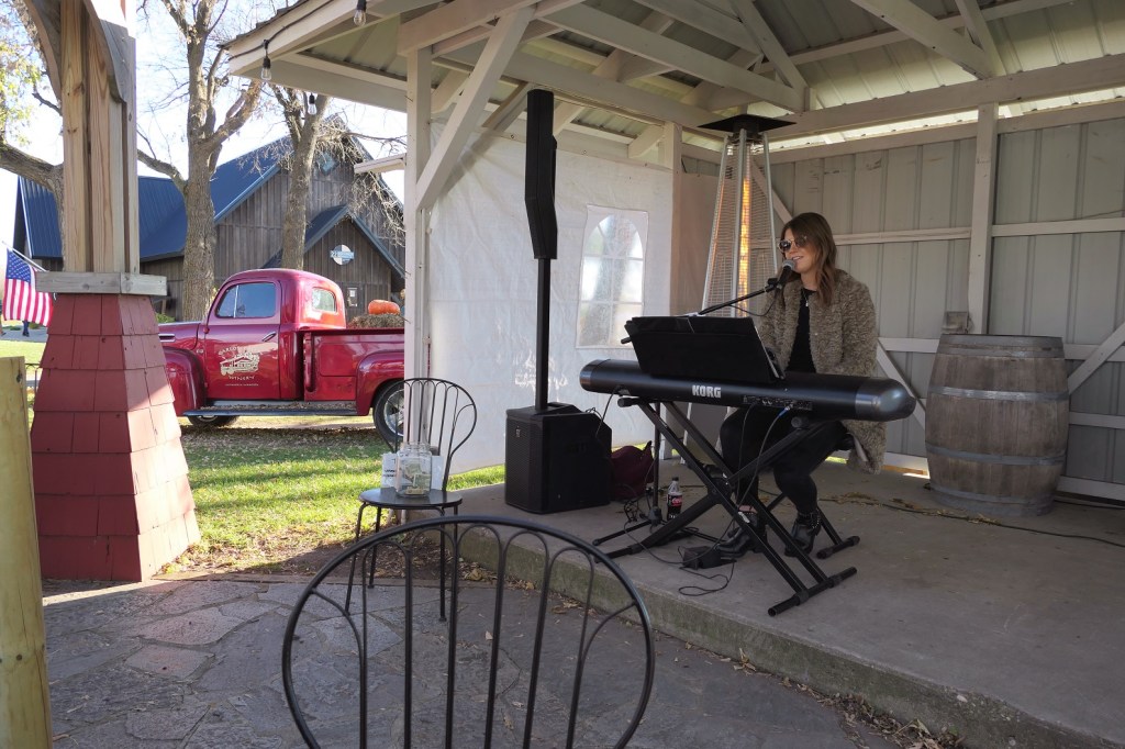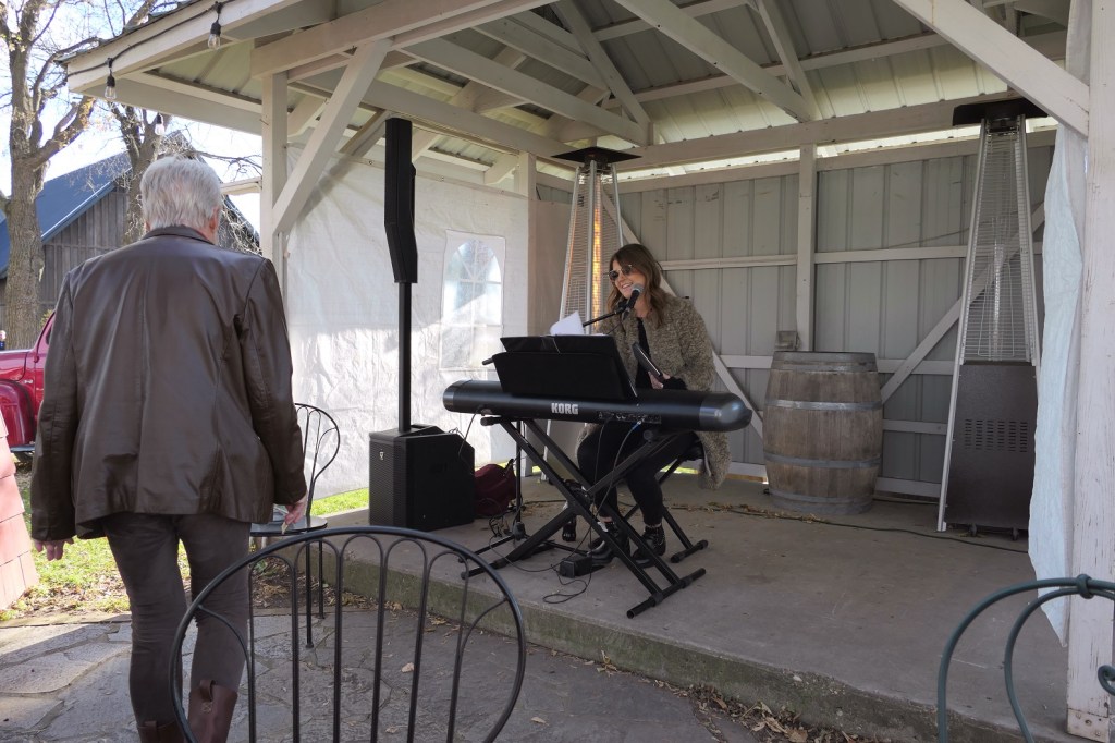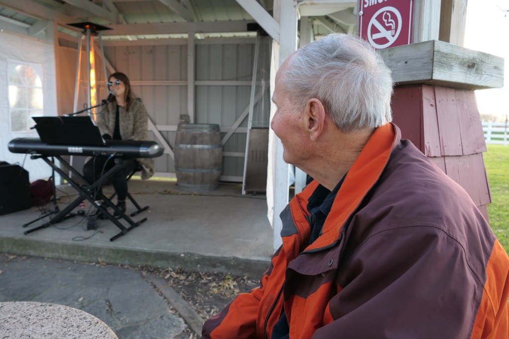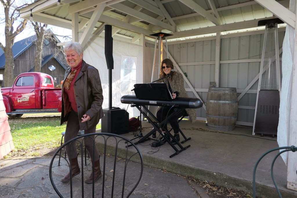 Deer season opened. For the time being, I would not recommend long, slow walks in the woods. Hunting season produces hunting widows. They can be seen around and about at such venues as Carlos Creek Winery. We forgot all about that as we arrived to a large crowd of folks on the premises on Saturday – we were there for our second consecutive weekend as audience for Elsa Lee . . .
