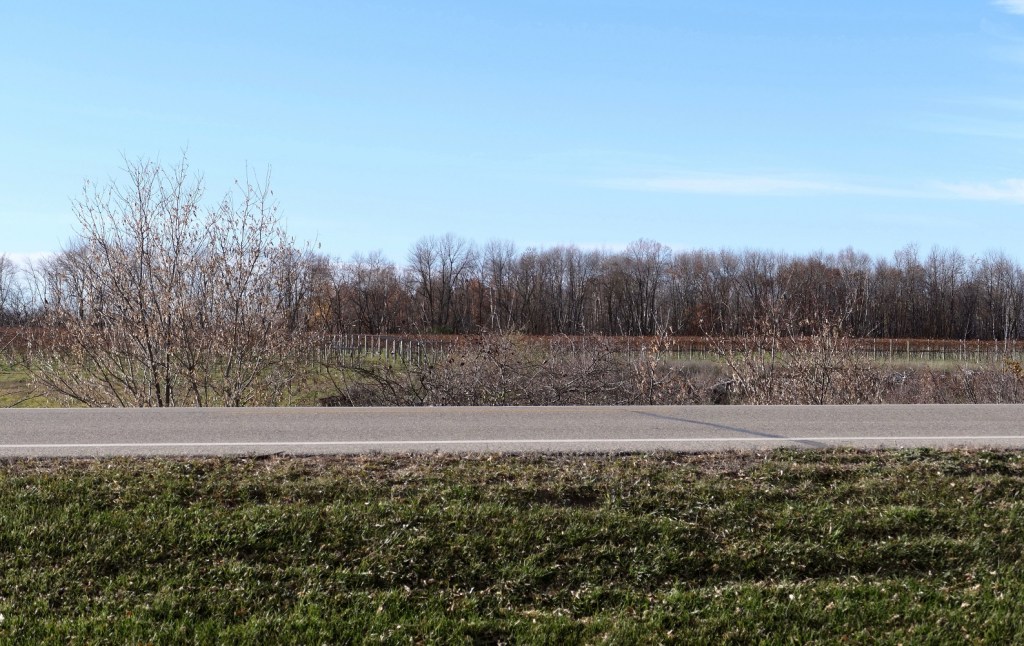 [As you may recall, we were here the previous weekend with a whole bunch of folks, most Class of ’65ers. We thought that would be the last weekend for outdoor music – we left after 2 hours of Elsa’s 3-hour session. She moved inside for her last hour. (Photo looking at the grape vines on the other side of Co. Rd. 34.)