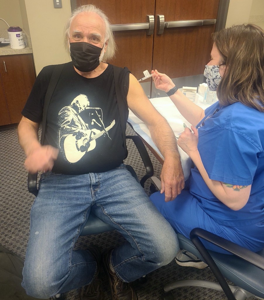 [Sophie, our niece, gives COVID vaccinations in Atlanta . . . ]
