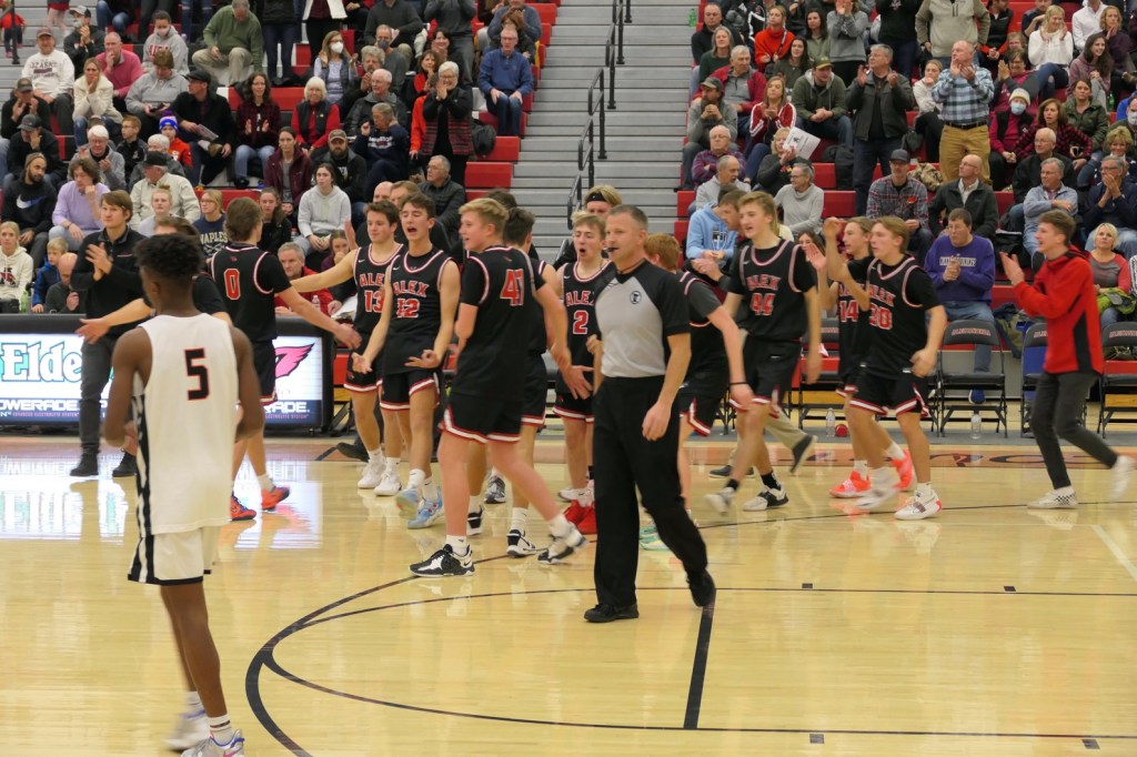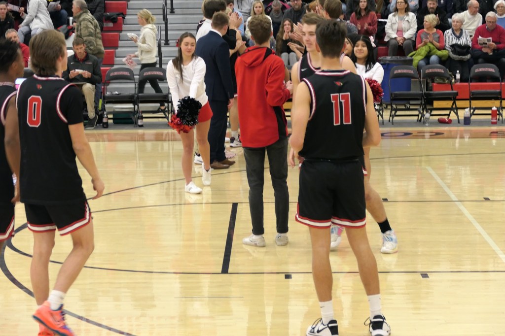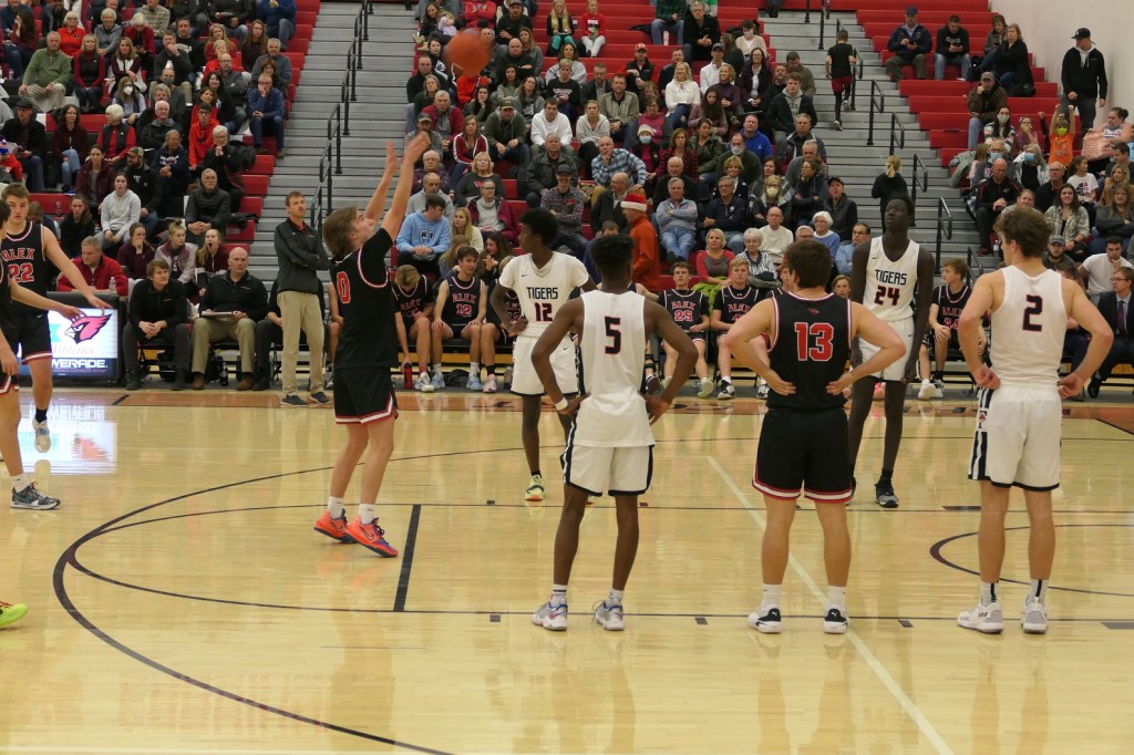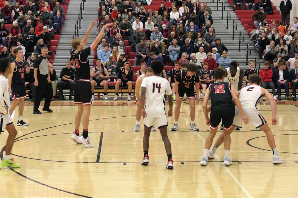 [Carter shooting free throws, Wyatt Odland (13), 6′ senior guard, started last year but still gets plenty of playing time . . . ]