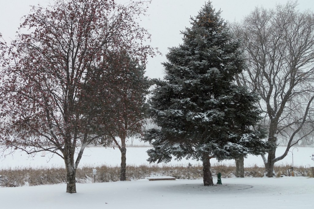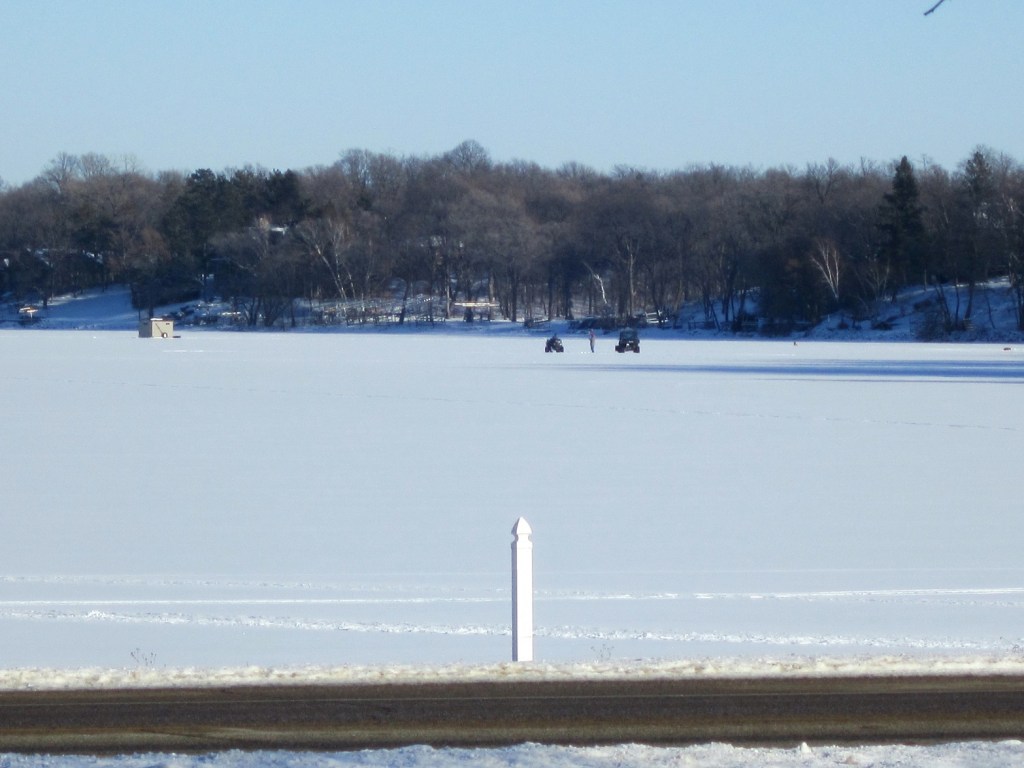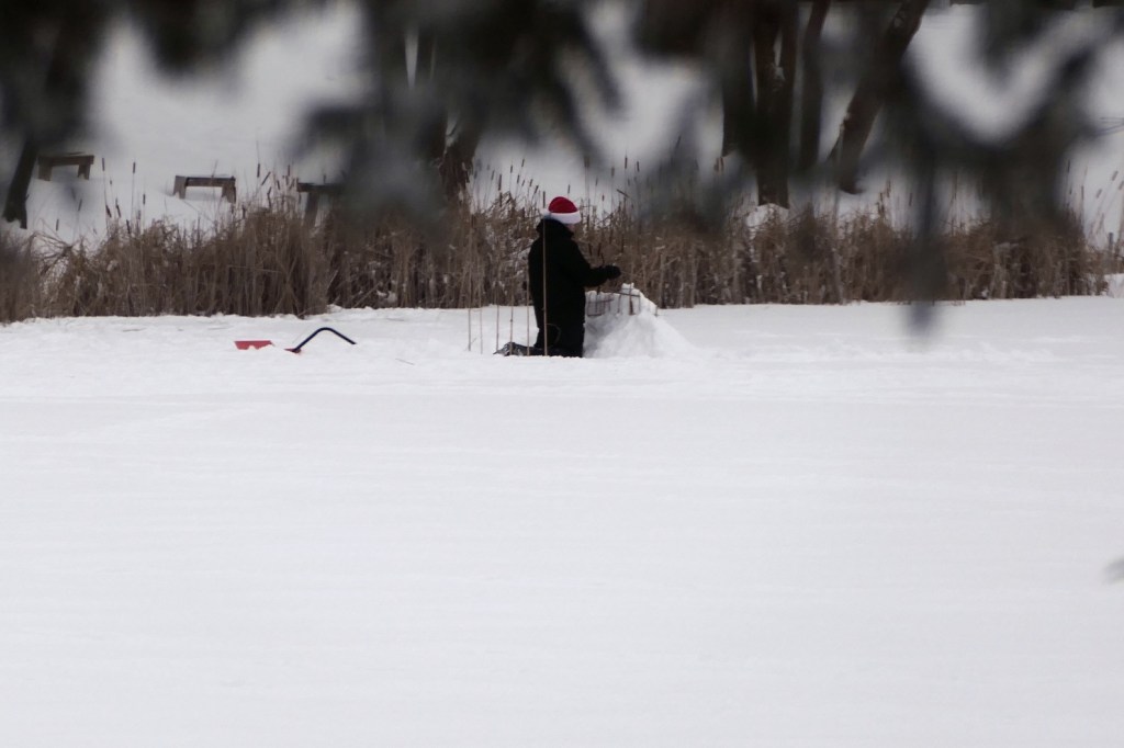 [A youngster on the far side of Lake H2Obert was out building a snowman . . . ]