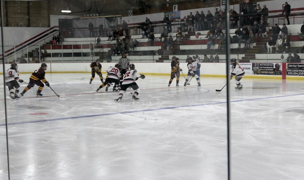 [I arrived at the Runestone Community Center to find my competition for covering the event, Mark Ripley (officially hired by the school to do such), was about the only other masked guy in place, explaining why I haven’t been to many games lately . . . ]
