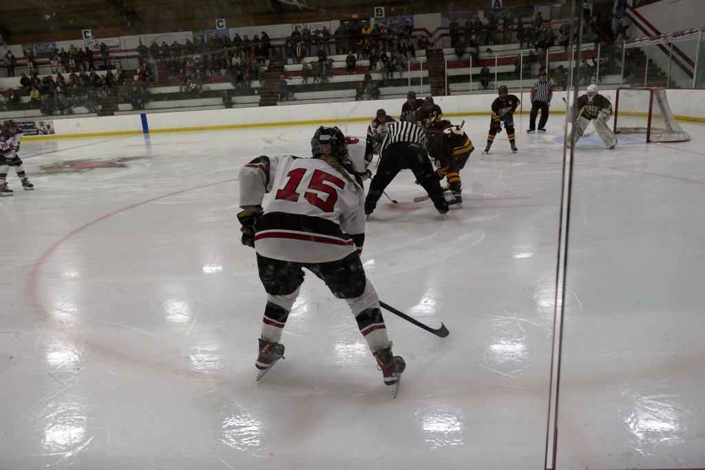 [This game took a really bad turn in the first period when she was accidentally blind sided and had to be helped off the ice, not to return. With Kaci Trosvig already out, we were missing some serious fire power for the rest of the game . . . ]
