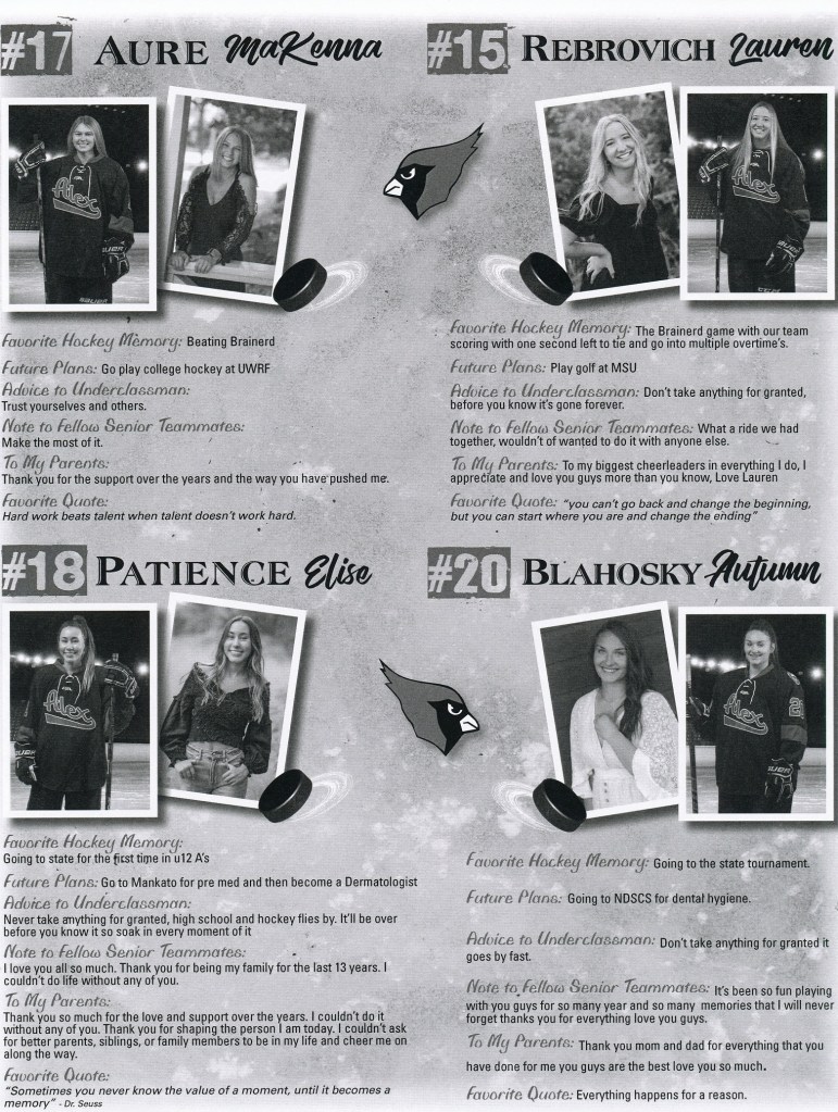 [Senior Lauren Rebrovich (15) scored the first goal of the game. It was also the first goal of her career. She is the daughter of the previous golf pro at the Alexandria Golf Club, and a member of the Cardinals state champion golf team . . . ]