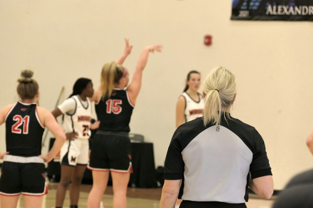 [Chloe Scholl shooting a free throw, though camera thought it important for only the referee to be in focus . . . ]