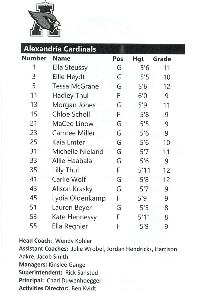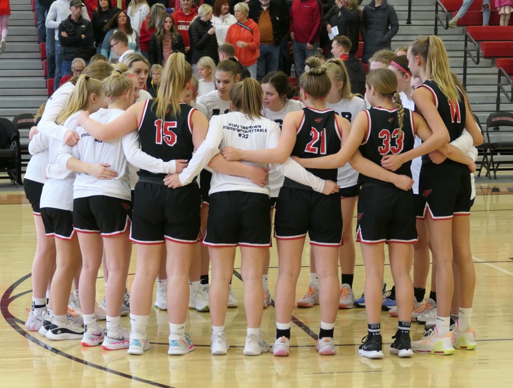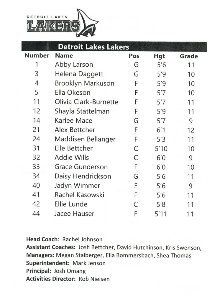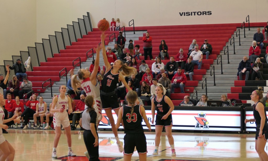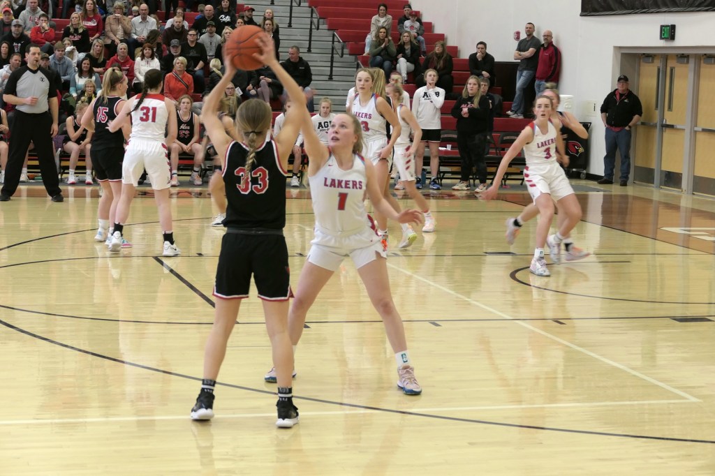 [I admittedly thought some time ago the season would end they way it did. The Cards had many games this season when they could not make free throws down the stretch. It happened again in this game when they could have won in regulation and the 1st overtime from the charity stripe. The Cards beat Detroit Lakes 56-21 during the regular, so this was quite unexpected. The Lakers are also young, but a year or two older and taller than the Cards and made the adjustment from the 1st game. They did a box-and-one on Hadley, the Cards leading scorer, so she was constantly double-teamed as teams often did the last half of the season. The Cards will get a year older and stronger and be back to make a run next year . . . ]