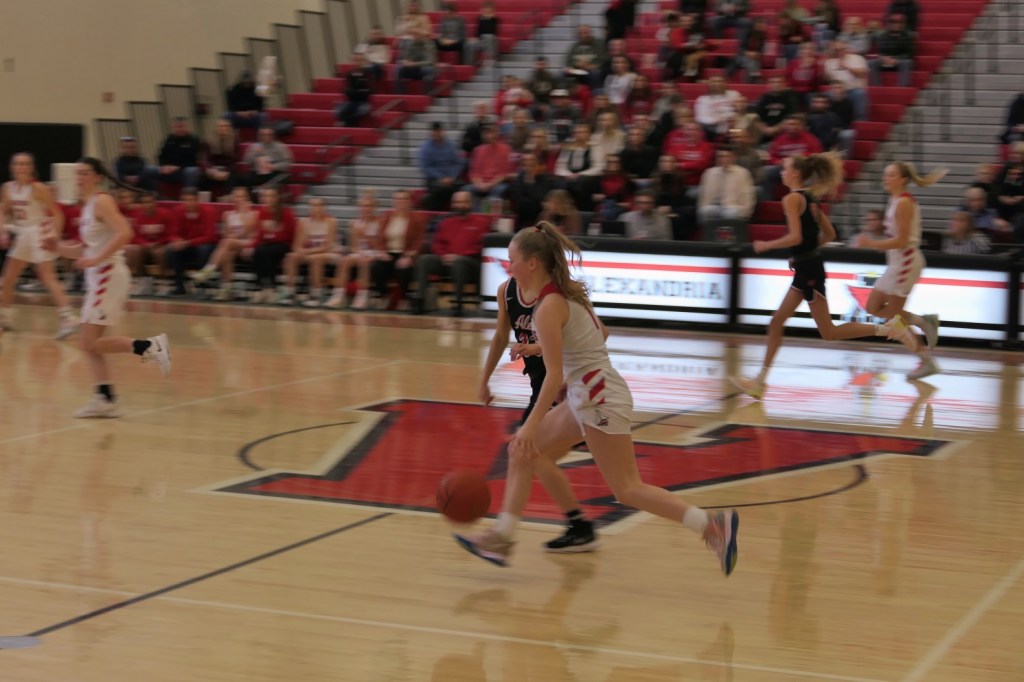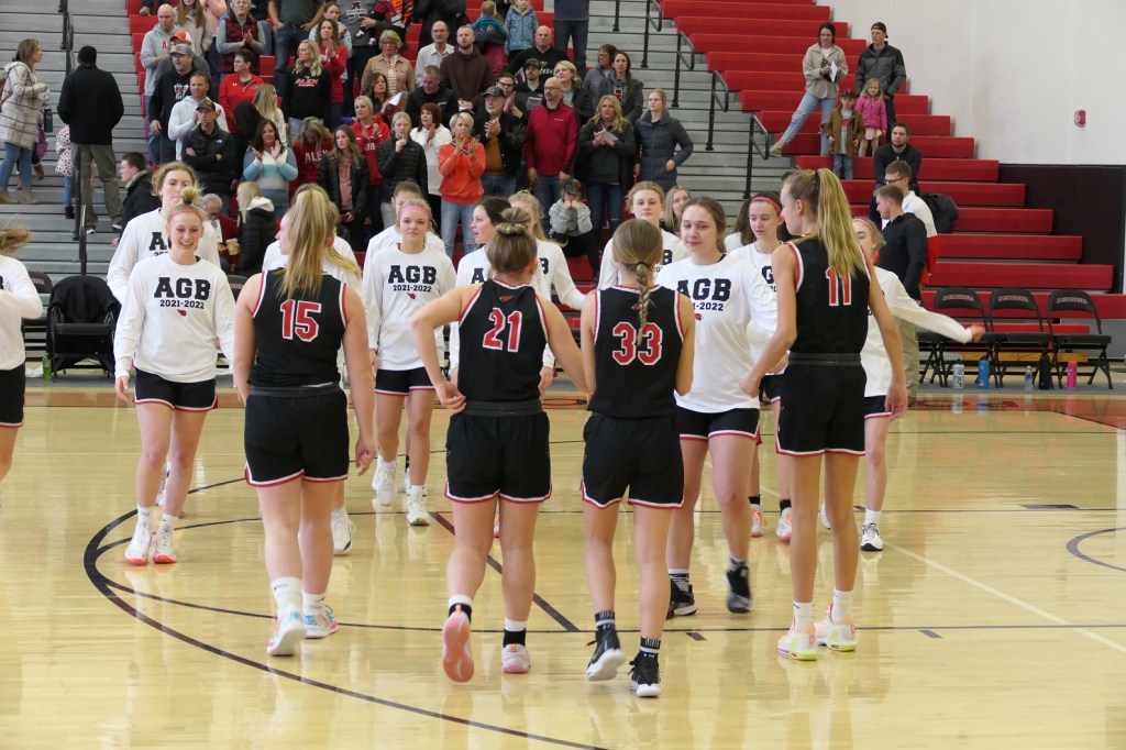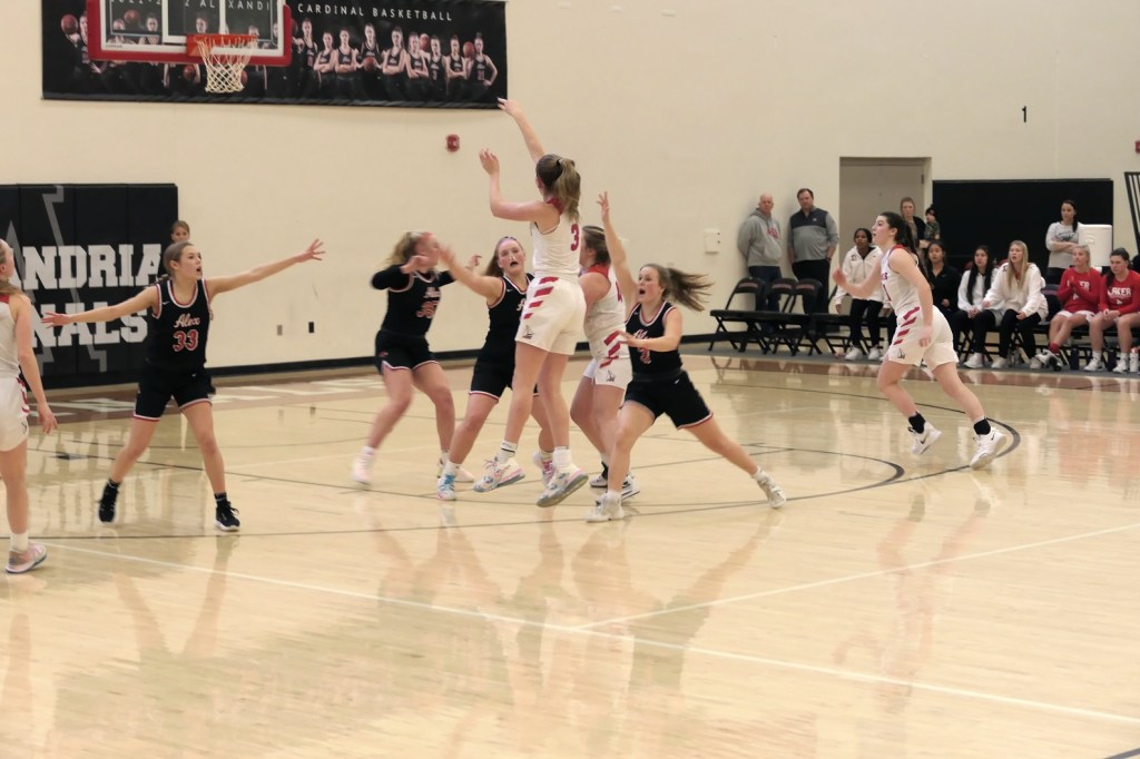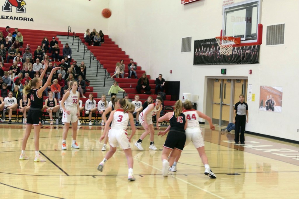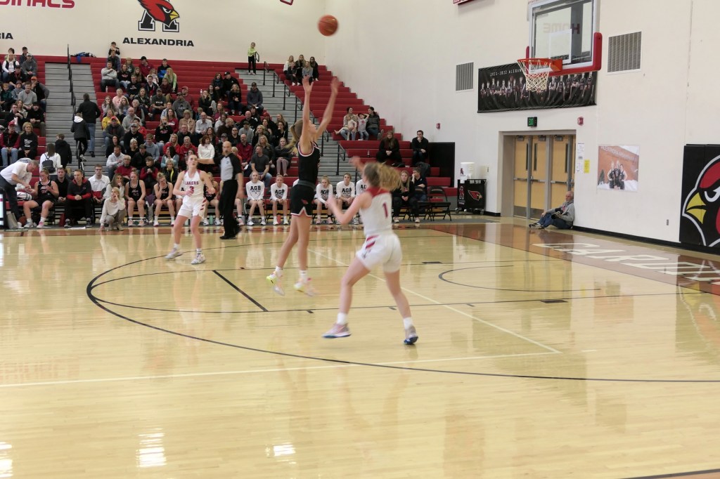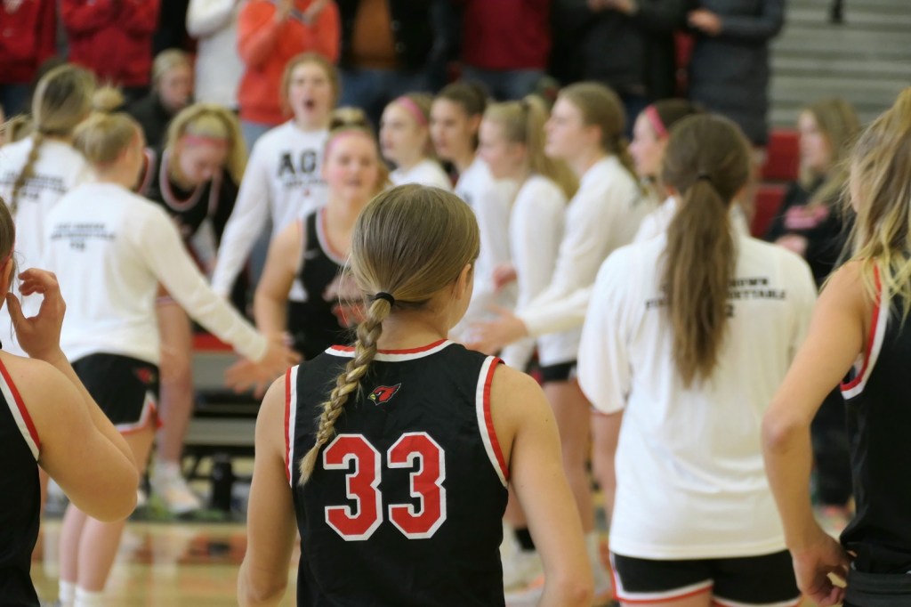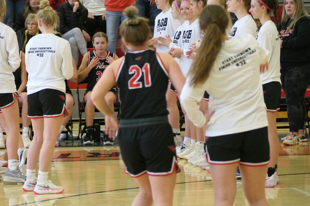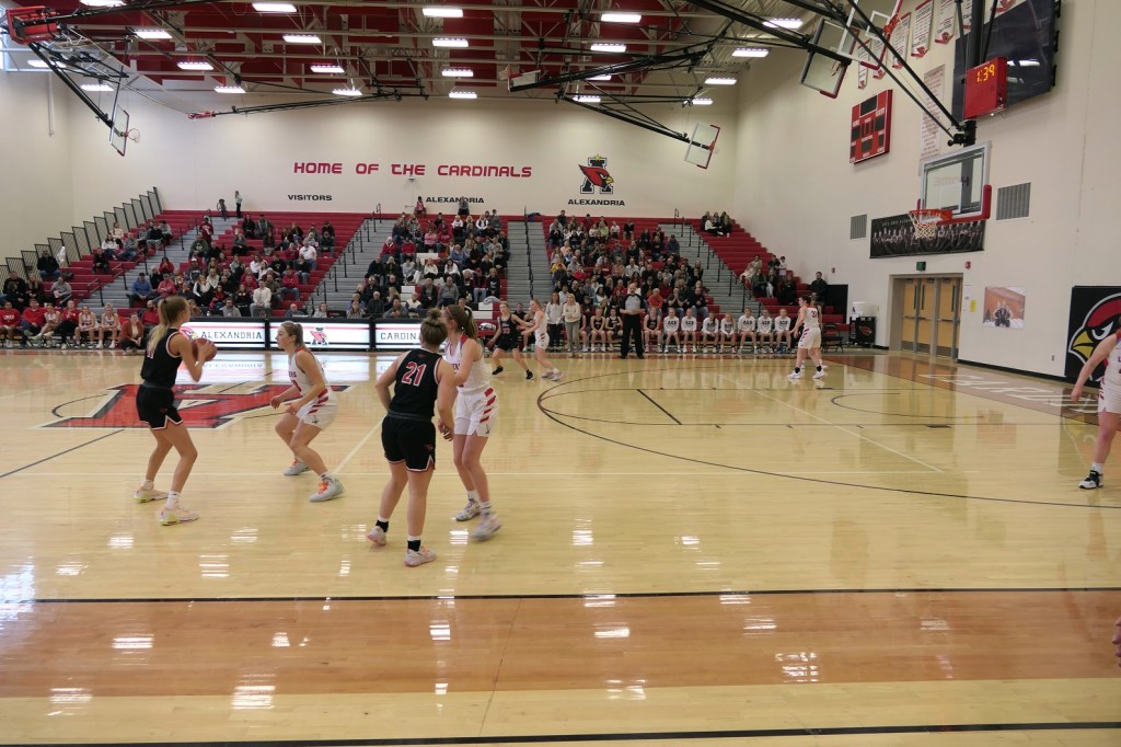[The boys team had a game at Fergus Falls earlier in the afternoon. They won to tie for the conference title. Then they dropped by as fan support for the girls. Sometimes it just doesn’t work out . . . ]