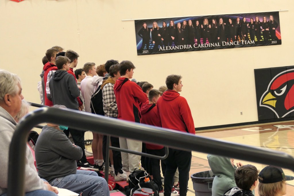 [Your ’21-22 Alexandria Cardinals, with Papa Hasz providing 6’5″ perspective from his position on the far upper left . . . ]
