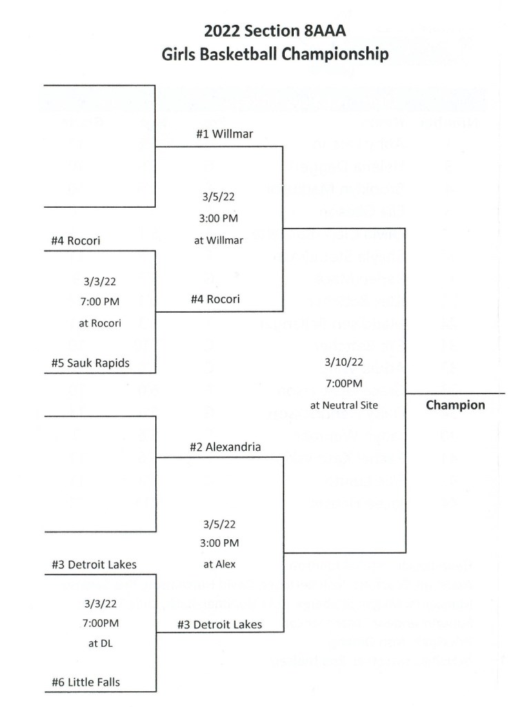 Up Next: Alex boys hockey team starts state tournament play this week. I think the boys basketball sections start this week as well . . .