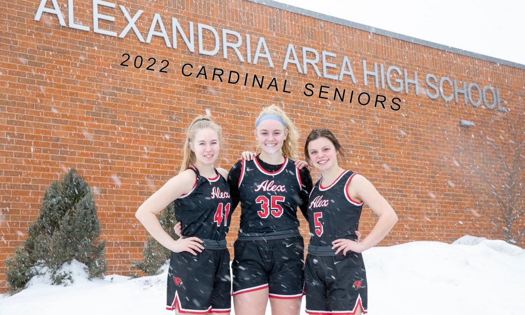 [This year’s senior class (school photo): Carlie Wolf (41), Lilly Thul (35), and Tessa McGrane (5)]