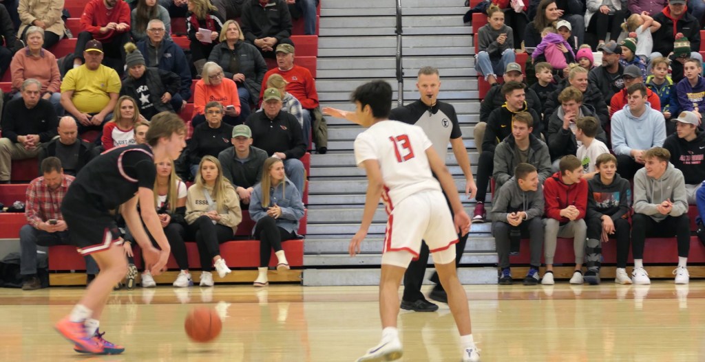 [Is Hadley Thul (11) really palming that basketball?]
