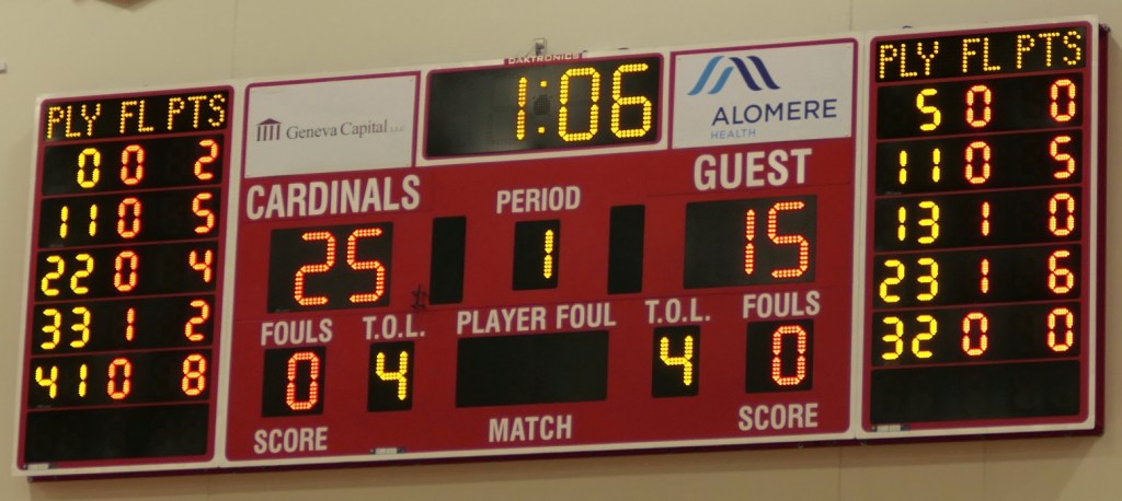 [As the 2nd half was starting I was admonishing from my front row seat, “Get the ball inside.” We have a talented 6’8″ center who had 2 points in the 1st half . . . ]