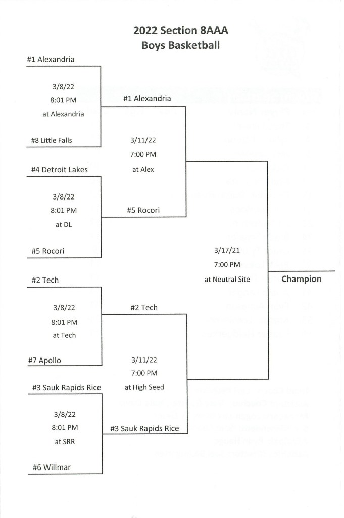 [And now on to the section championship game against St. Cloud Tech. A win then will send the Cards to their 2nd consecutive state tournament . . . ]