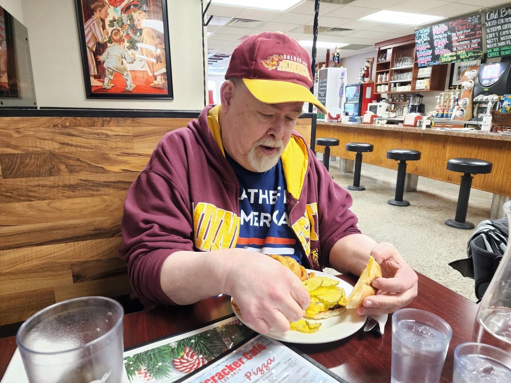 As you may know, for several years now the Boys of ’65 have been visiting small town restaurants in the area. So, yesterday Little Mayo snuck in the long drive from Burnsville on a day that wasn’t weather adverse. Yes, we are in the midst of another large snow storm today, with another due on Sunday.
