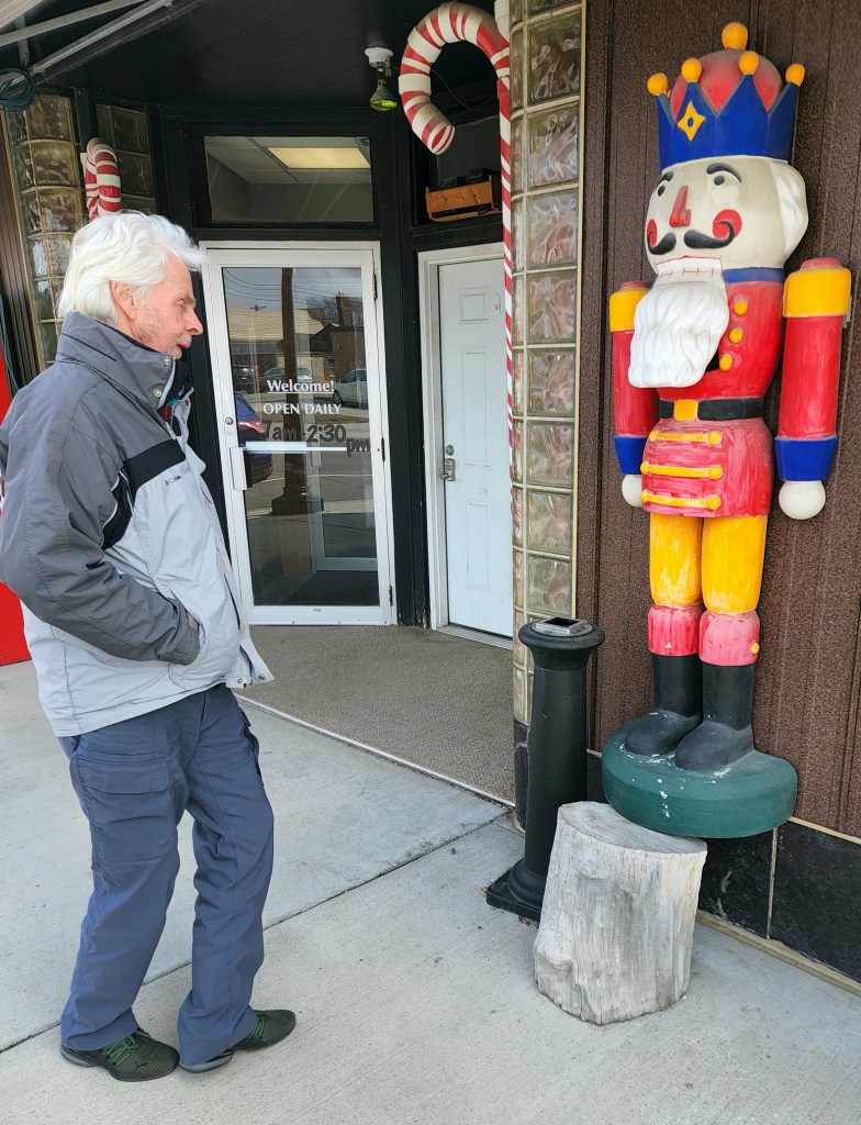 [Bradley scouring the Nutcracker’s extensive menu. Hey, we always opt for the burger or the special . . . ]