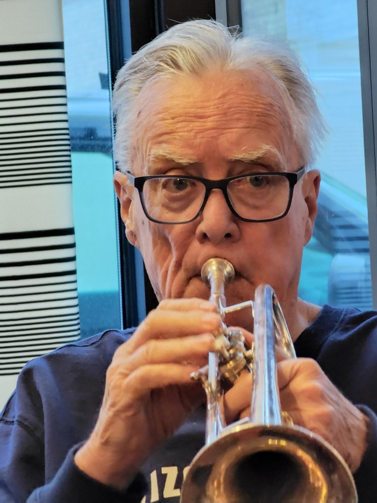 [Bill, a.k.a. “They call me Mr. Riggs”, is a retired history teacher. He has been playing the trumpet longer than Louis Armstrong . . . ]