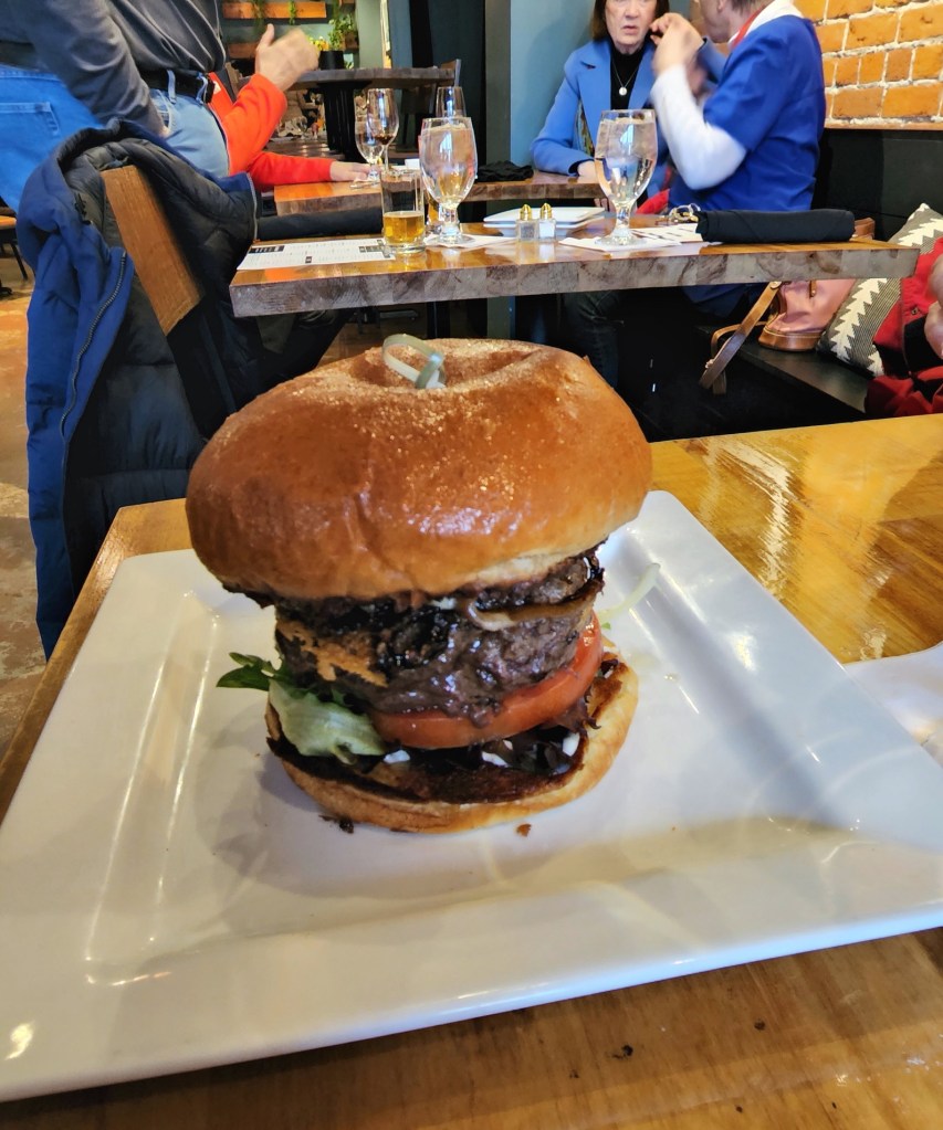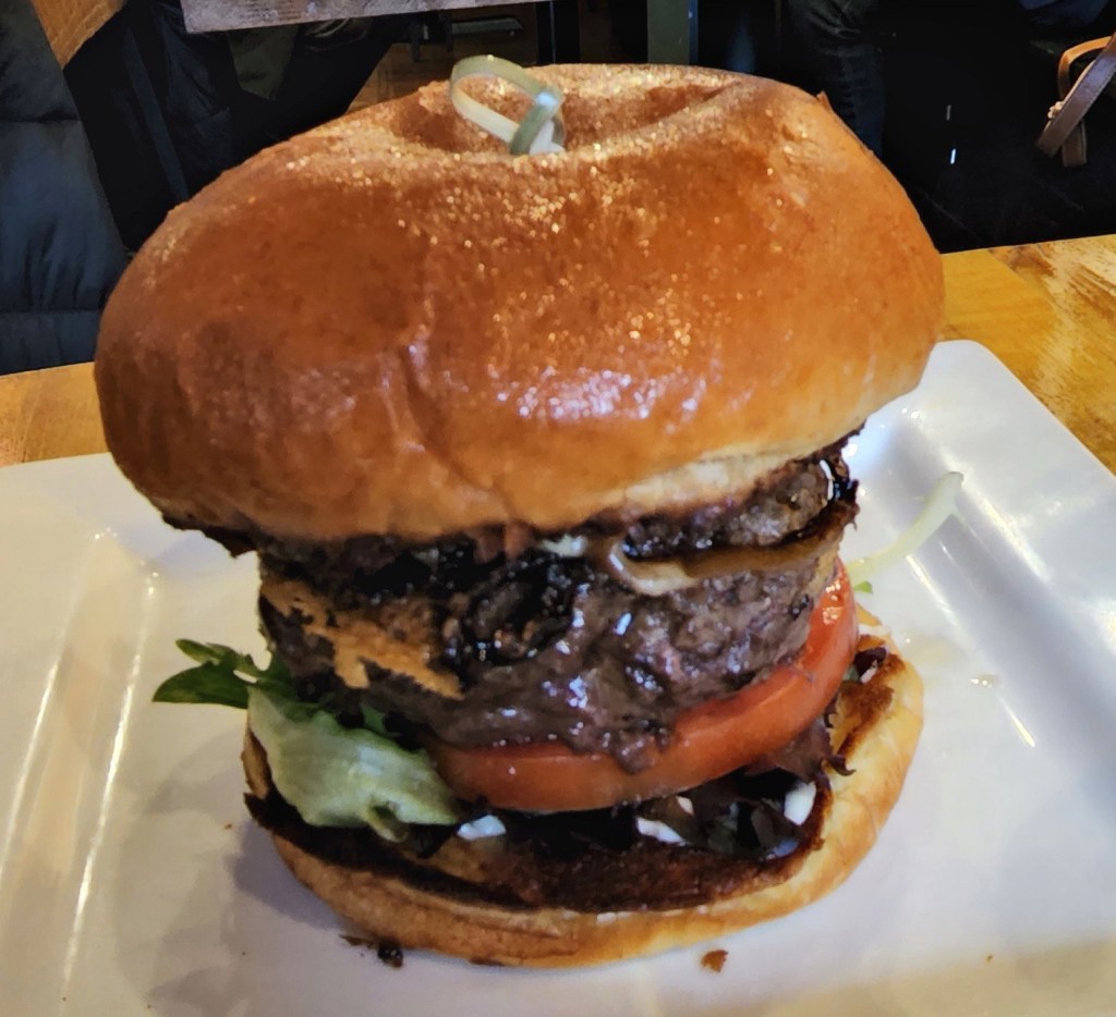 [This is the Super’s – the Schatzki burger, various stuff with 42 pounds of ground beef . . . ]